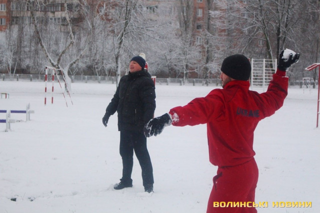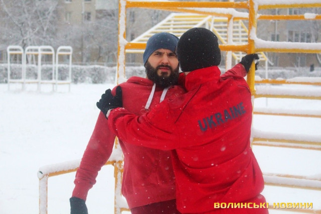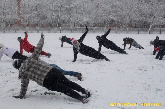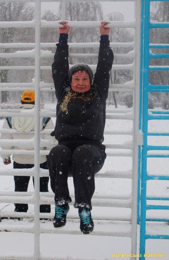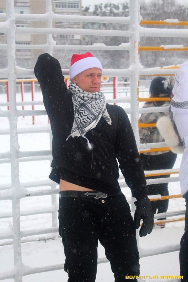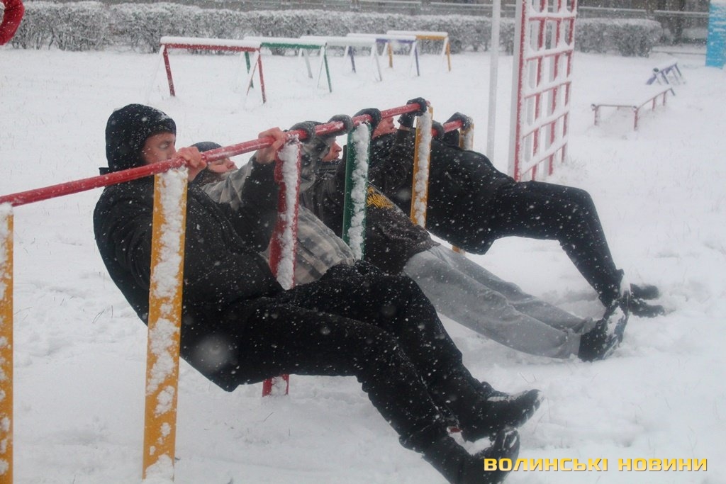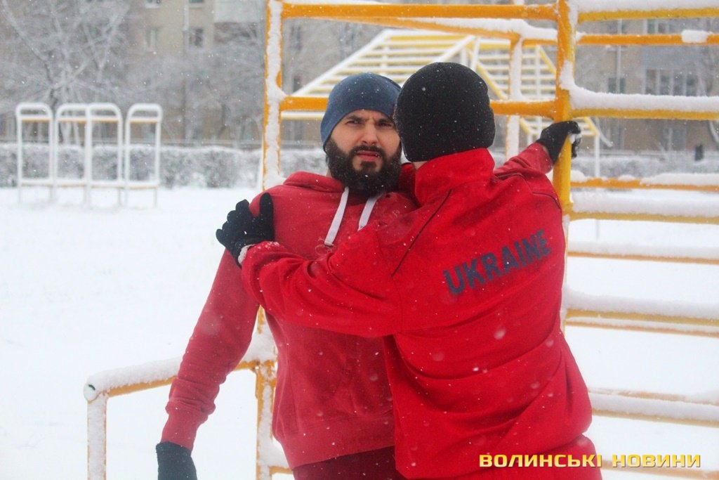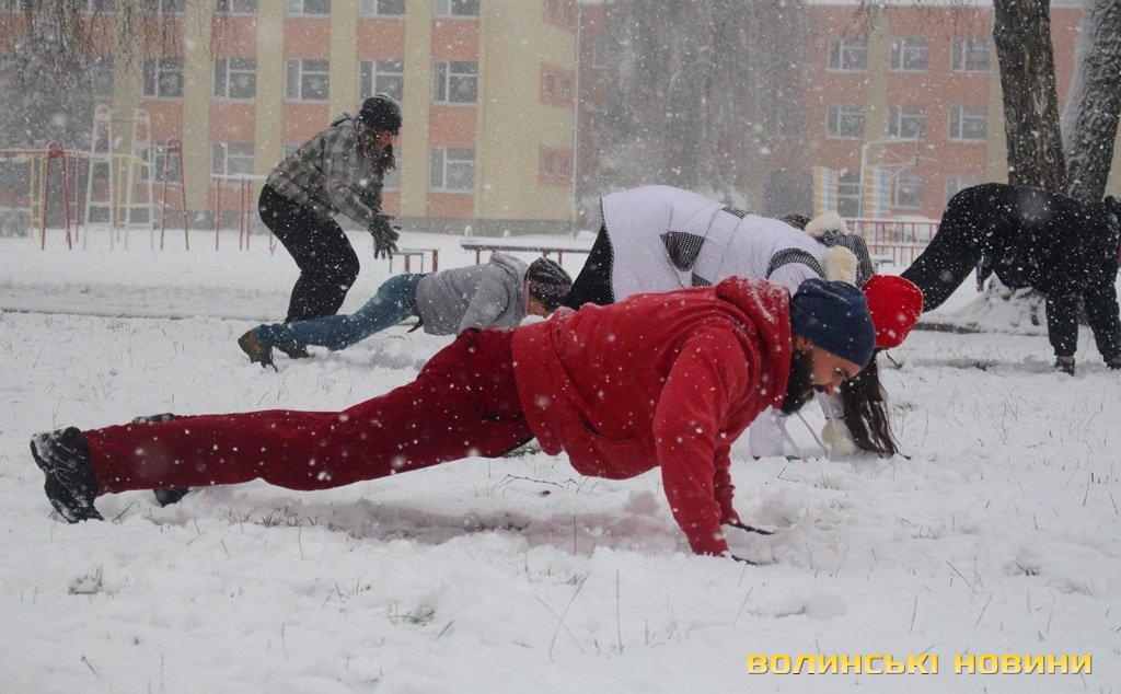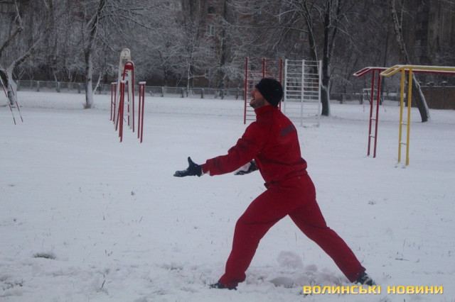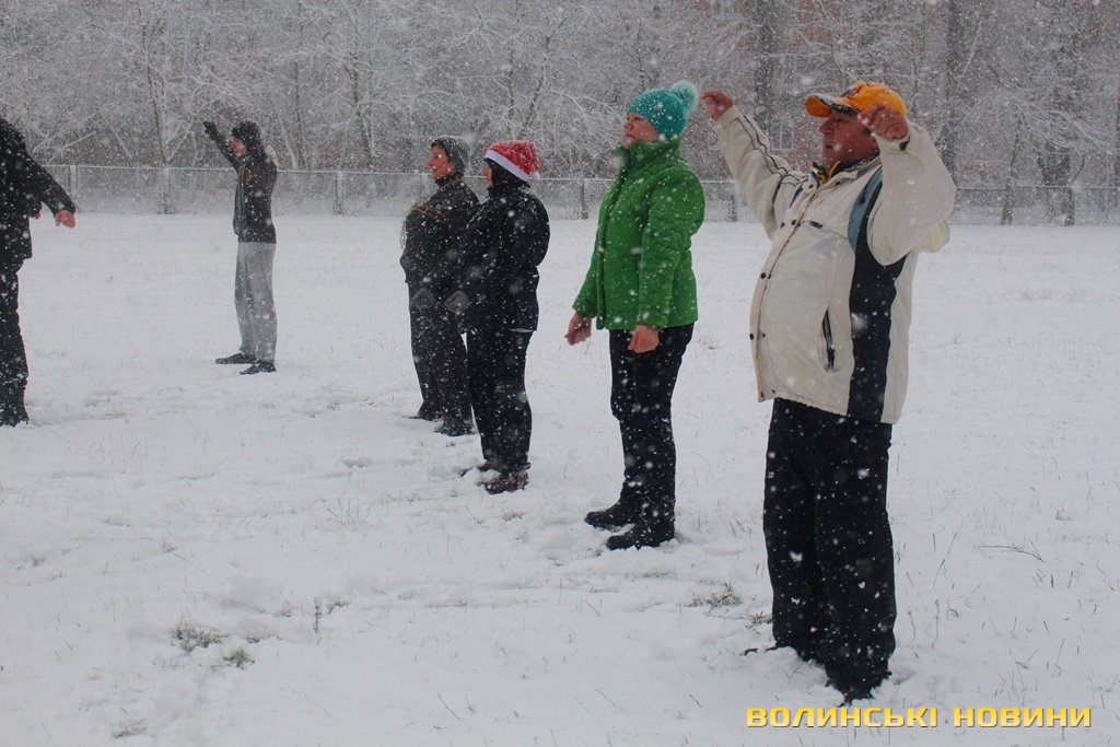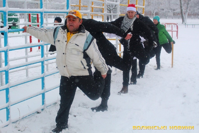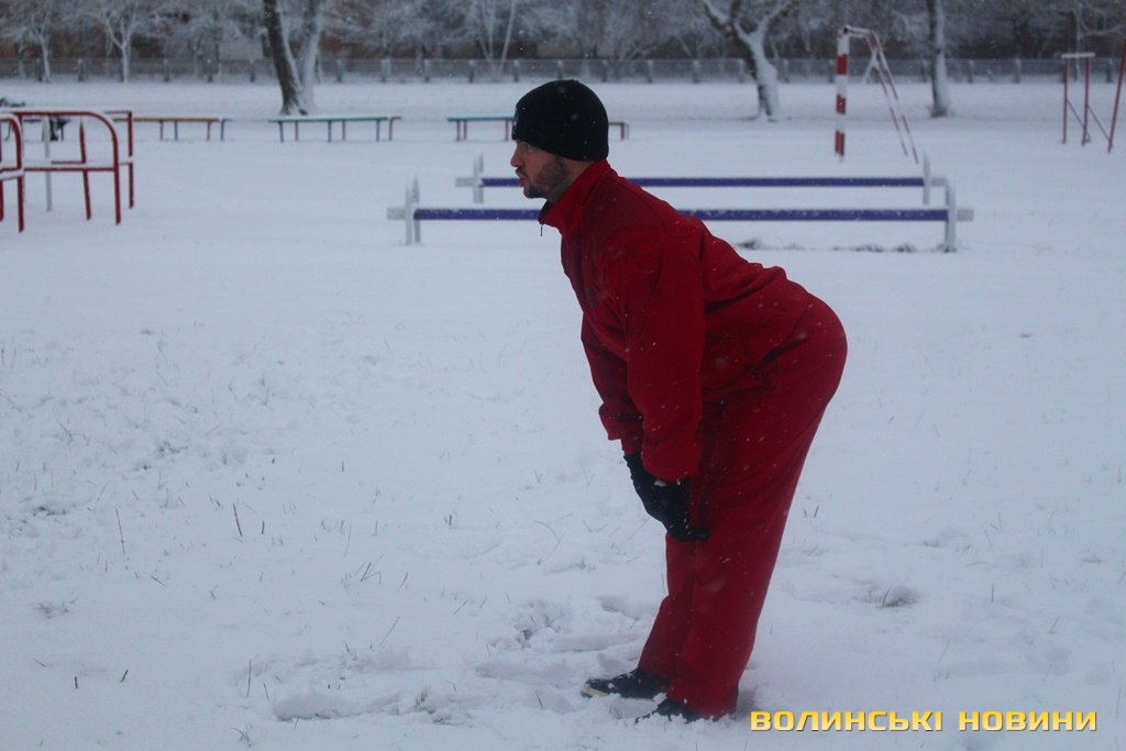 Незважаючи на сніг, як завше, почали розминку з бігу, опісля перейшли до силових вправ. Новорічний настрій дався в знаки, тож спортсмени вирішили прийти у «святковій формі», що лише підкреслило наближення нового року та додало веселості у тренування.Оскільки сьогоднішнє заняття було останнім у 2017 році, то Інформаційне агентство Волинські Новини вирішило підбити підсумки та запитати незмінного тренера недільної зарядки Олега Хом’яка про наступне: