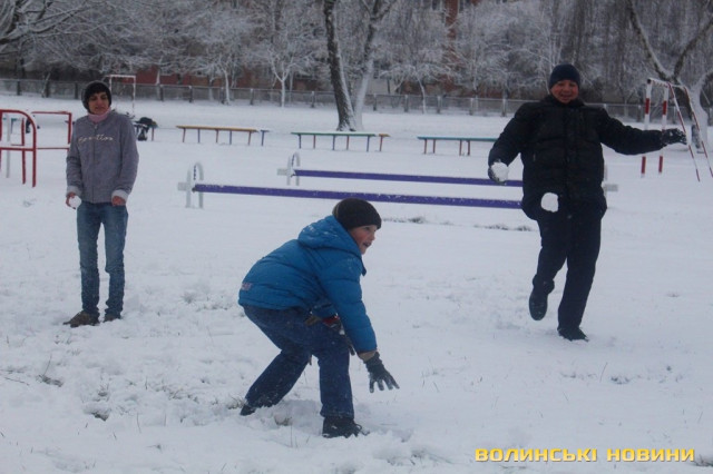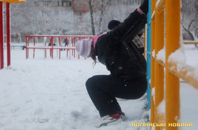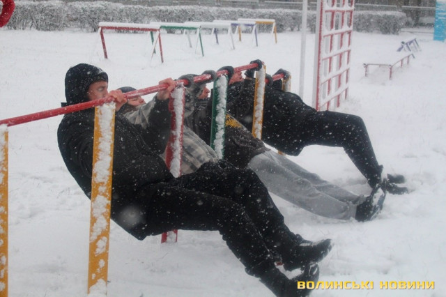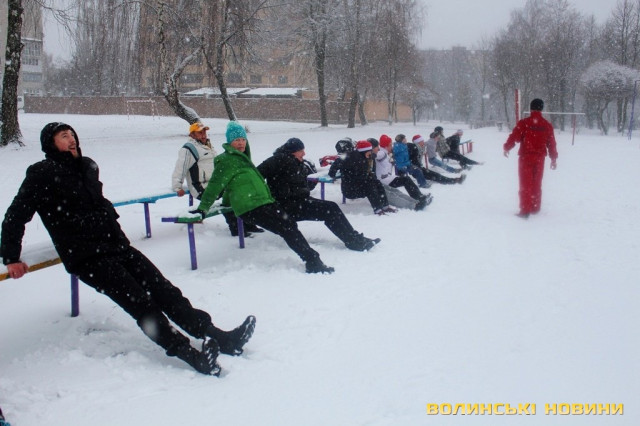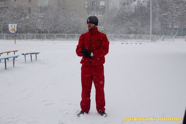Погода зробила учасникам ранкової акції передноворічний подарунок, вкривши снігом місце тренування - спортмайданчик гімназії № 21, та й усіх, хто прийшов зокрема.