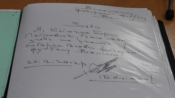 Голова Волинської облдержадміністрації Борис Клімчук нещодавно заявив, що не втручається у футбольні справи області. Мовляв, йому не має діла до ФК «Волинь» і до футболу взагалі. Однак губернатор чи то має погану пам’ять, чи то лукавить. Адже майже рік тому, він власноруч написав заяву у кандидати на посаду голови федерації футболу Волині (ФФВ).