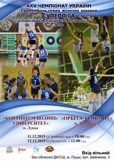 Календарні ігри сьомого туру жіночої Суперліги луцька волейбольна команда «Континіум-Волинь-Університет» проведе вдома. В гості до Луцька приїде запорізька «Орбіта-ЗТК-ЗНУ».