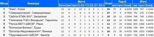 За підсумками ігор першої частини чемпіонату «Орбіта» разом зі «Сєвєродончанкою» та «хіміком» входять до трійки Суперліги. Волинянки з п’ятьма перемогами і сімома поразками займають шосту сходинку «турнірки».