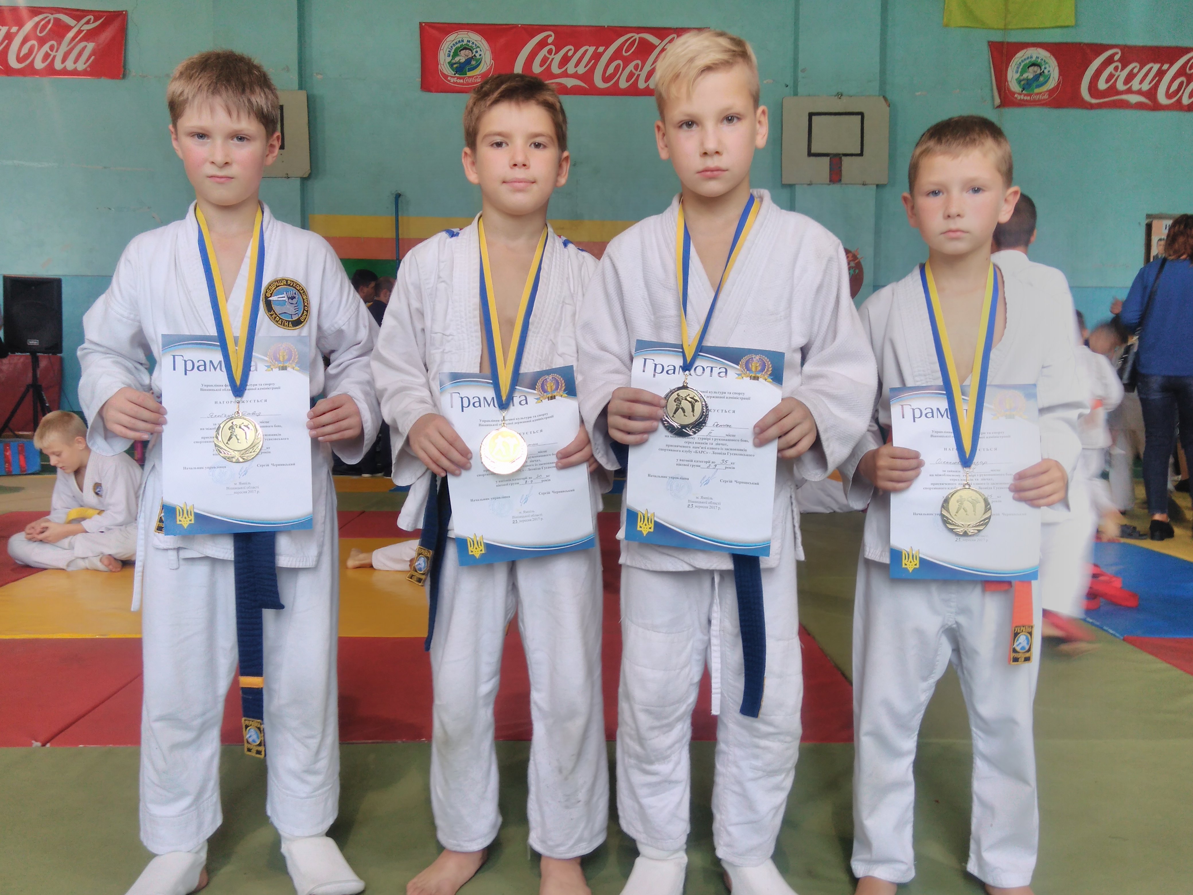Першу сходинку п’єдисталу завоювали: Олексюк Назар (8-9 років, до 25 кг), Попович Антон (8-9 років, до 30 кг), Яковчук Давид (8-9 років, до 35 кг), Цицан Владислав (10-11 років, до 35 кг), Іовенко Владислав (10-11 років, до 45 кг), Гончарук Захар (10-11 років, до 55 кг) – ВОСК «Магістр»; Дячук Іван (14-15 років, до 55 кг) – ВРФРБ «РУБІЖ».