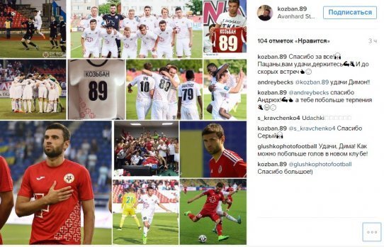 Форвард луцької "Волині" Дмитро Козьбан виставив прощальний пост у Instagram.