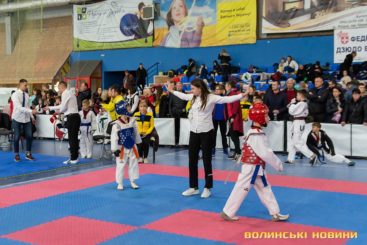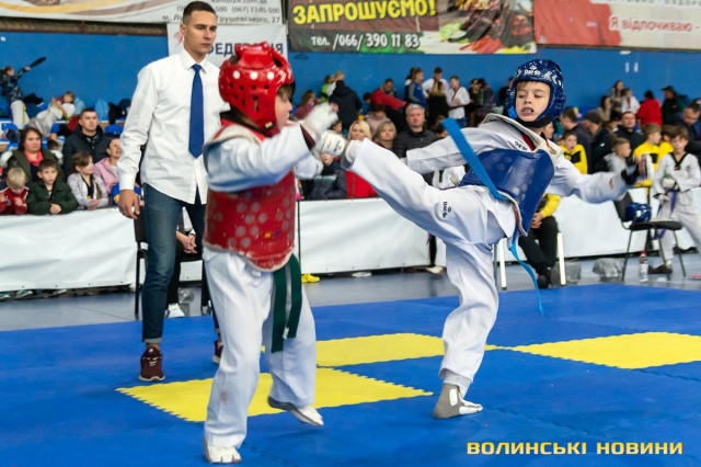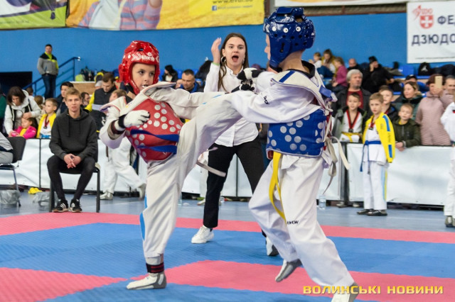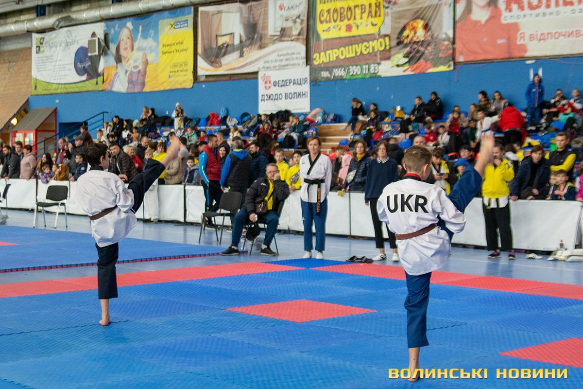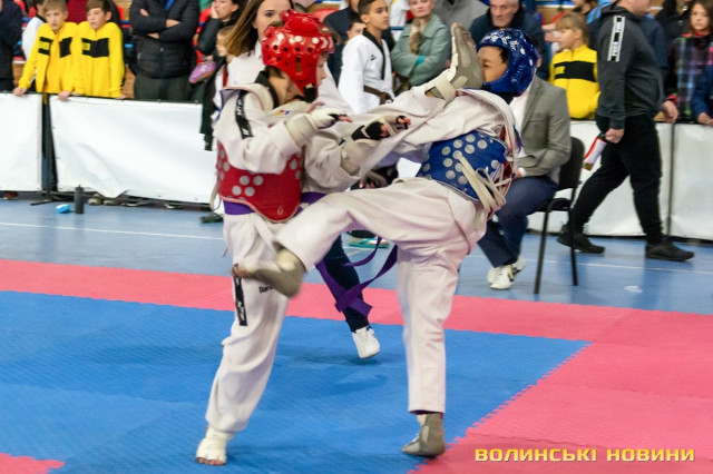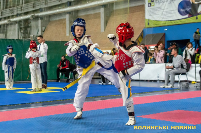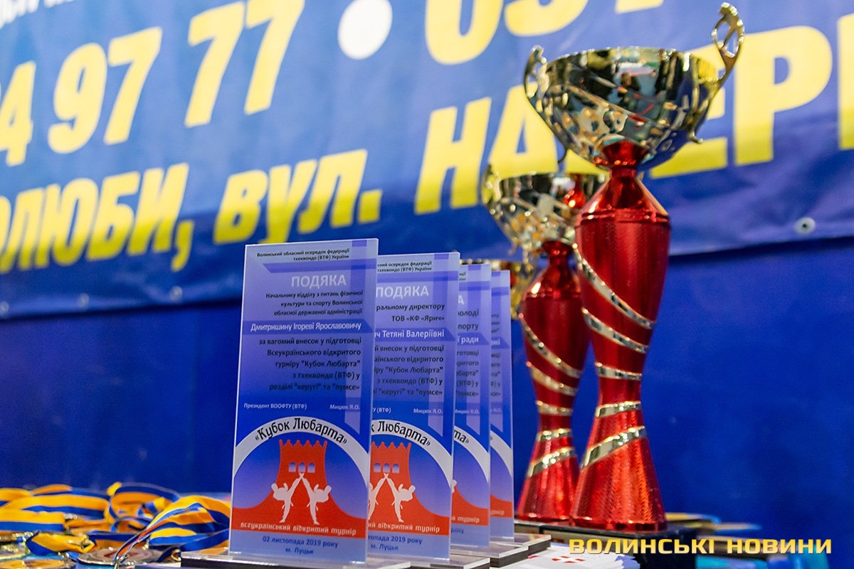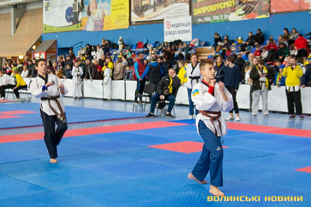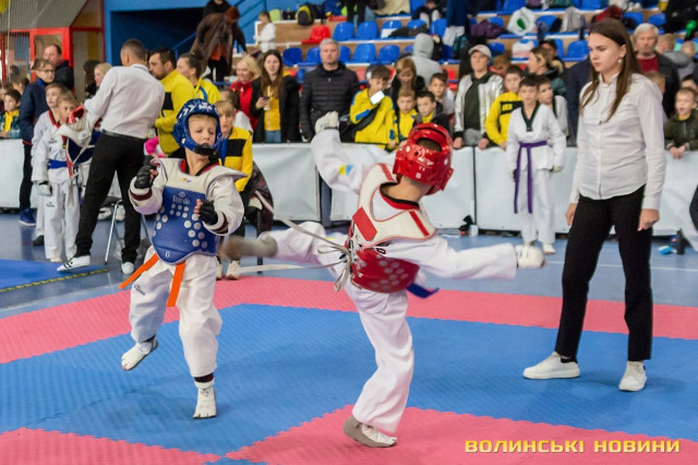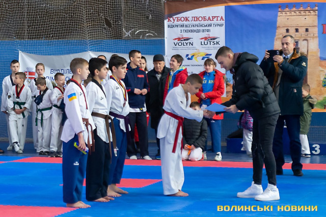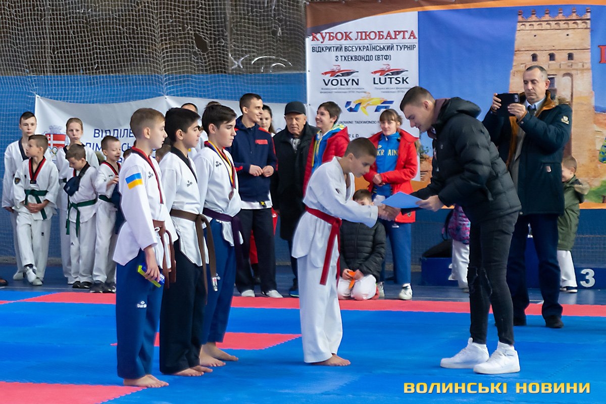 Всеукраїнський відкритий турнір «Кубок Любарта» з тхеквондо (ВТФ) проходить у розділах «керугі» (спаринг) та «пумсе» (показові виступи-демонстрації базових технік). Водночас, у рамках спортивного свята, спортсмени позмагаються за Кубок України у розділі «пумсе».Вчора, 1 листопада, змаганням передувала робота мандатної комісії – зустріч команд та їхня реєстрація, зважування, формування пар, заповнення протоколів тощо. Сьогодні ж, розпочалися перші поєдинки, у перерві між якими пройшла церемонія офіційного відкриття «Кубка Любарта».Почесні гості змагань звернулися до учасників із вітальними словами. Зокрема, спеціаліст відділу з питань фізичної культури та спорту Волинської ОДА Василь Литнянчин побажав усім міцного здоров’я, спортсменам – якнайкраще проявити свої вміння, а тренерам – витримки і терпіння.Своєю чергою, виконувачка обов’язків директора департаменту сім’ї, молоді та спорту Луцької міськради Катерина Шкльода зауважила, що спортсмени, які зібралися на змаганні такого рівня, – вже найкращі. Тому, незалежно від результату, вони можуть пишатися змогою виходити на ці татамі, демонструвати свої вміння, представляючи свій край.Директорка КЗ «Луцький міський центр фізичного здоров'я населення «Спорт для всіх» Луцької міської ради» Наталія Назарук з приємністю відзначила збільшення кількості учасників. Також вона подякувала тренерам і батькам, які працюють над розкриттям потенціалу наймолодших учасників турніру.Організатор змагань Президент Волинського обласного осередку федерації тхеквондо (ВТФ) України Ярослав Мицюк, розповів, що до Луцька приїхало 318 спортсменів з 8 областей України. Наймолодші учасники 2014 року народження – їх двоє і вони продемонструють свої вміння у сімейних показових виступах. А найстаршому спортсмену трохи більше за 40 років. Це доводить, що тхеквондо чудово підходить для людей різного віку та підготовки.На завершення офіційної частини, Ярослав Мицюк побажав спортсменам перемог та розвитку. Він подякував партнерам, які допомогли в організації змагань та вручив почесні відзнаки: начальнику відділу з питань фізичної культури та спорту Волинської ОДА Ігореві Дмитришину, Департаменту сім’ї, молоді та спорту Луцької міськради, директорці КЗ «Луцький міський центр фізичного здоров'я населення «Спорт для всіх» Луцької міської ради» Наталії Назарук, генеральній директорці ТОВ «КФ «Ярич» Тетяні Шермолович.За тим, прозвучав державний гімн і організатори оголосили змагання відкритими. Після нетривалої перерви, під час якої спортсмени активно розминалися, змагання продовжилися.