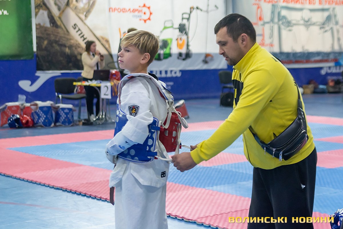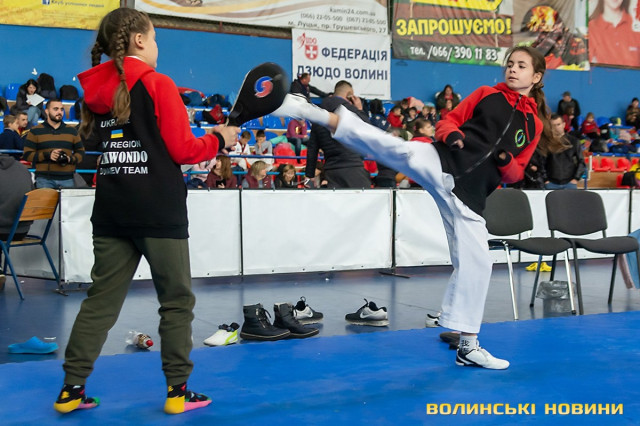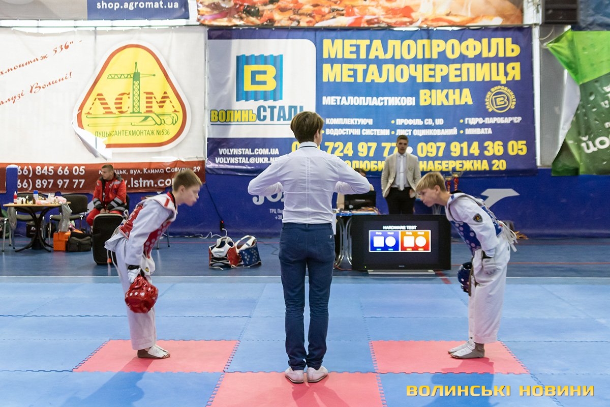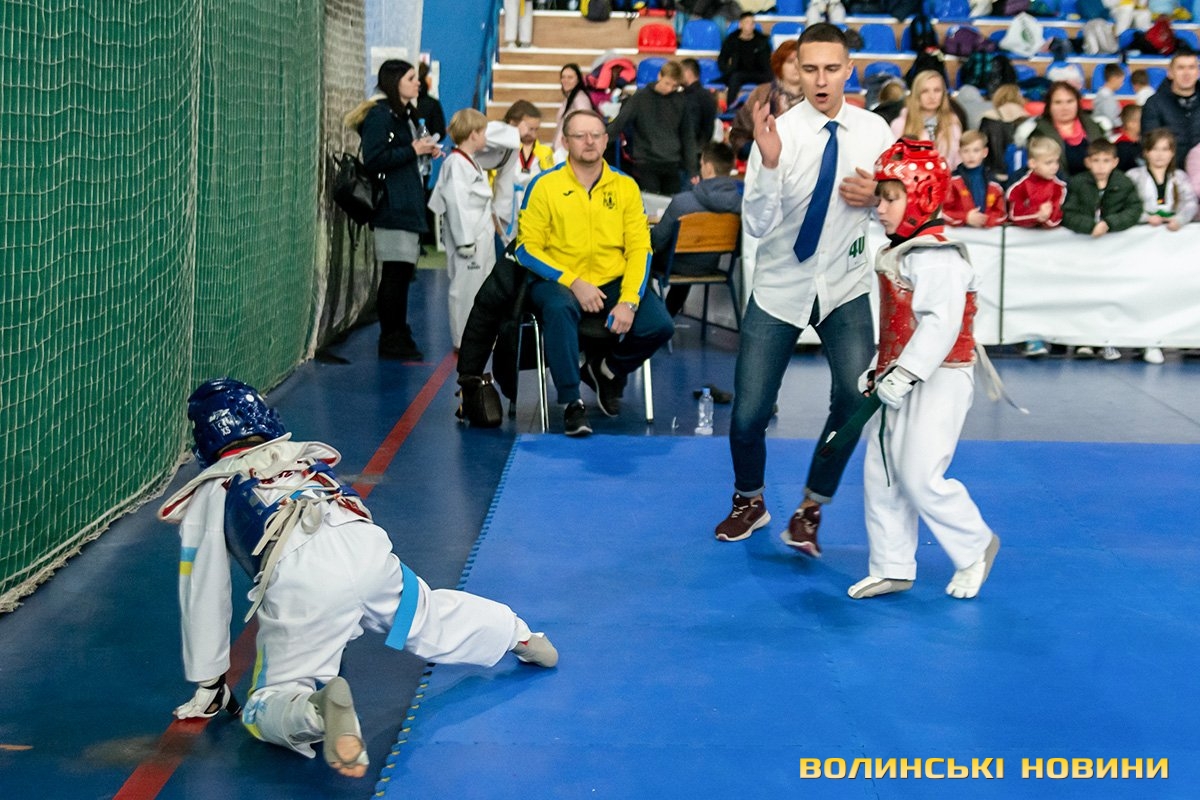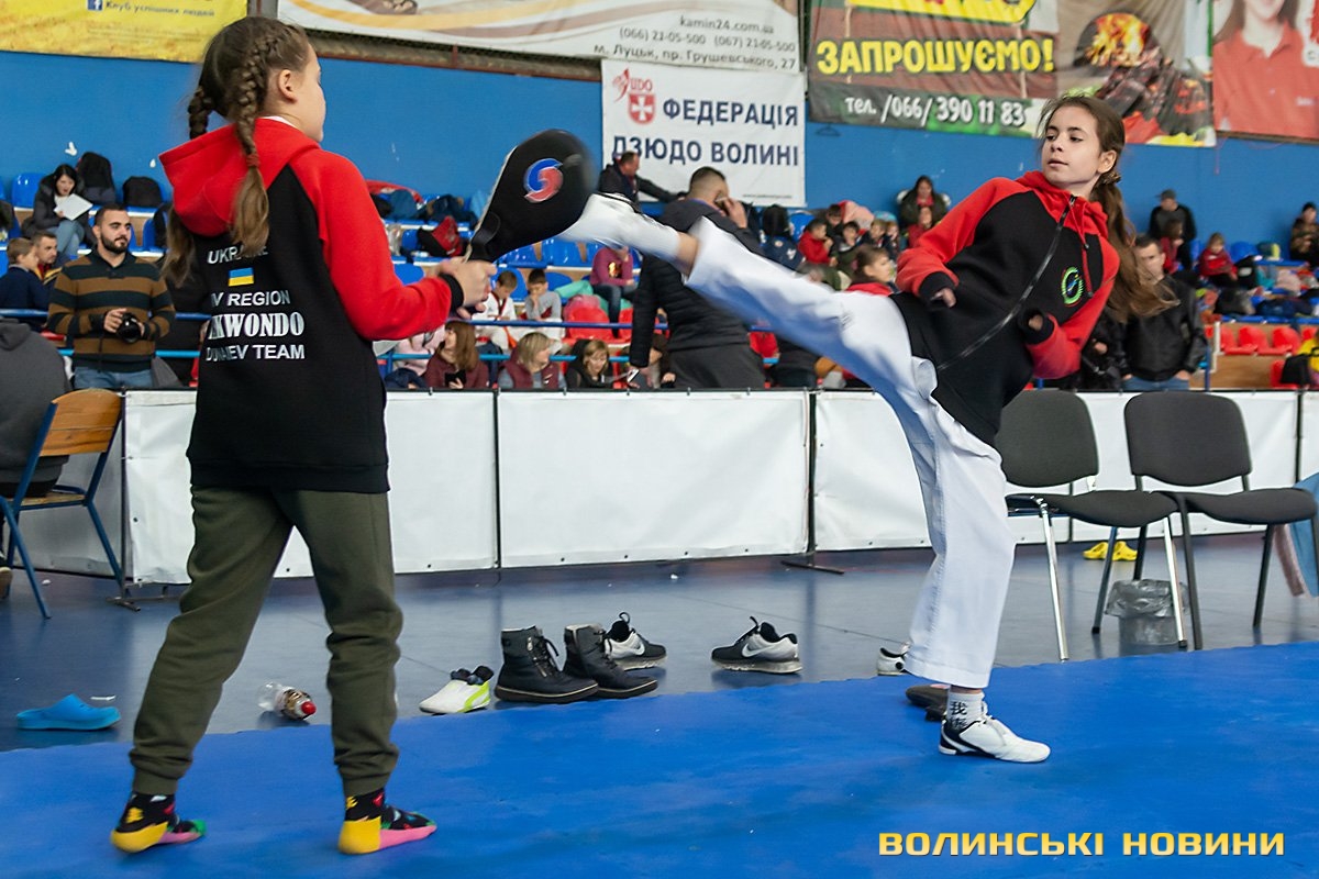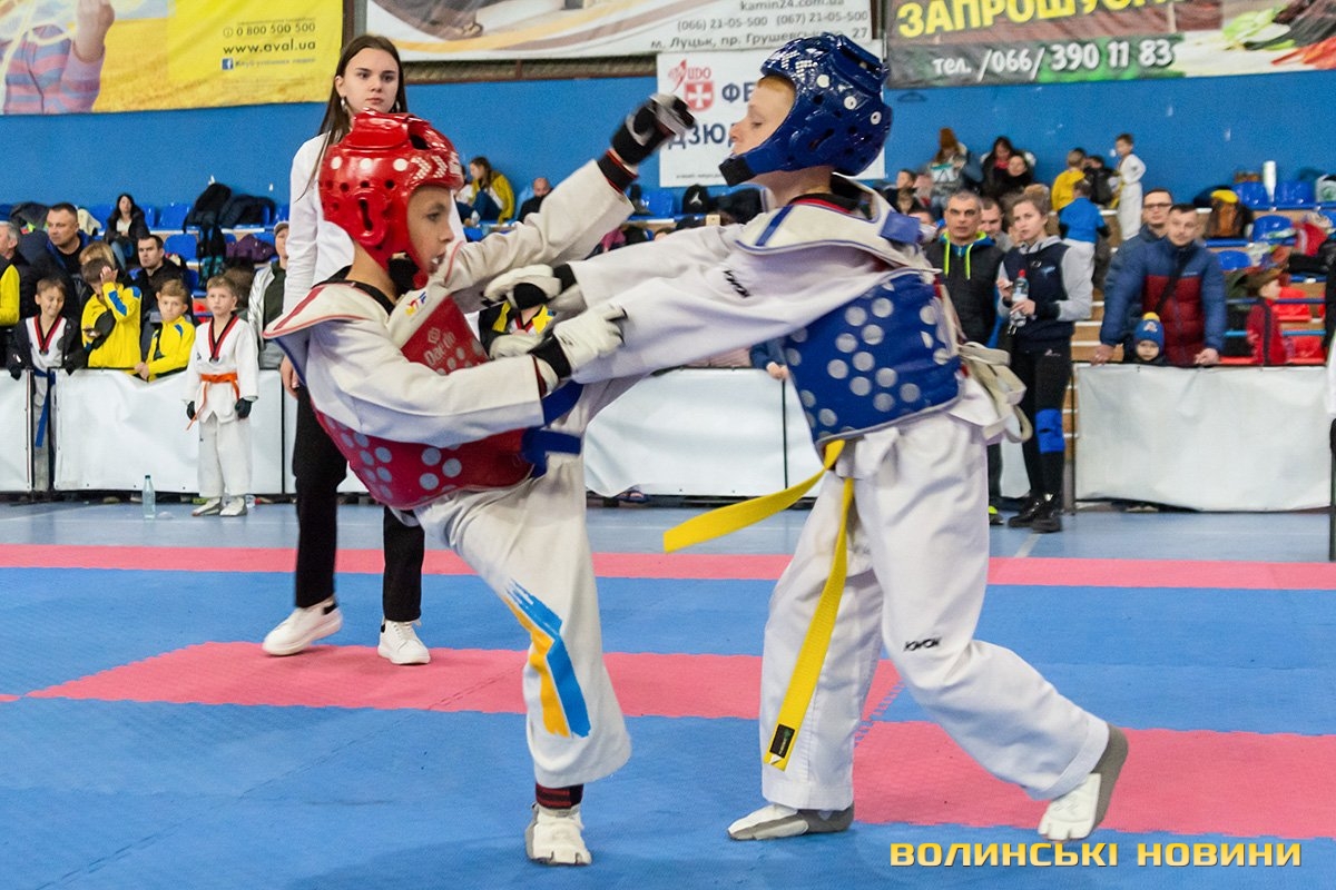 Всеукраїнський відкритий турнір «Кубок Любарта» з тхеквондо (ВТФ) проходить у розділах «керугі» (спаринг) та «пумсе» (показові виступи-демонстрації базових технік). Водночас, у рамках спортивного свята, спортсмени позмагаються за Кубок України у розділі «пумсе».Вчора, 1 листопада, змаганням передувала робота мандатної комісії – зустріч команд та їхня реєстрація, зважування, формування пар, заповнення протоколів тощо. Сьогодні ж, розпочалися перші поєдинки, у перерві між якими пройшла церемонія офіційного відкриття «Кубка Любарта».Почесні гості змагань звернулися до учасників із вітальними словами. Зокрема, спеціаліст відділу з питань фізичної культури та спорту Волинської ОДА Василь Литнянчин побажав усім міцного здоров’я, спортсменам – якнайкраще проявити свої вміння, а тренерам – витримки і терпіння.Своєю чергою, виконувачка обов’язків директора департаменту сім’ї, молоді та спорту Луцької міськради Катерина Шкльода зауважила, що спортсмени, які зібралися на змаганні такого рівня, – вже найкращі. Тому, незалежно від результату, вони можуть пишатися змогою виходити на ці татамі, демонструвати свої вміння, представляючи свій край.Директорка КЗ «Луцький міський центр фізичного здоров'я населення «Спорт для всіх» Луцької міської ради» Наталія Назарук з приємністю відзначила збільшення кількості учасників. Також вона подякувала тренерам і батькам, які працюють над розкриттям потенціалу наймолодших учасників турніру.Організатор змагань Президент Волинського обласного осередку федерації тхеквондо (ВТФ) України Ярослав Мицюк, розповів, що до Луцька приїхало 318 спортсменів з 8 областей України. Наймолодші учасники 2014 року народження – їх двоє і вони продемонструють свої вміння у сімейних показових виступах. А найстаршому спортсмену трохи більше за 40 років. Це доводить, що тхеквондо чудово підходить для людей різного віку та підготовки.На завершення офіційної частини, Ярослав Мицюк побажав спортсменам перемог та розвитку. Він подякував партнерам, які допомогли в організації змагань та вручив почесні відзнаки: начальнику відділу з питань фізичної культури та спорту Волинської ОДА Ігореві Дмитришину, Департаменту сім’ї, молоді та спорту Луцької міськради, директорці КЗ «Луцький міський центр фізичного здоров'я населення «Спорт для всіх» Луцької міської ради» Наталії Назарук, генеральній директорці ТОВ «КФ «Ярич» Тетяні Шермолович.За тим, прозвучав державний гімн і організатори оголосили змагання відкритими. Після нетривалої перерви, під час якої спортсмени активно розминалися, змагання продовжилися.