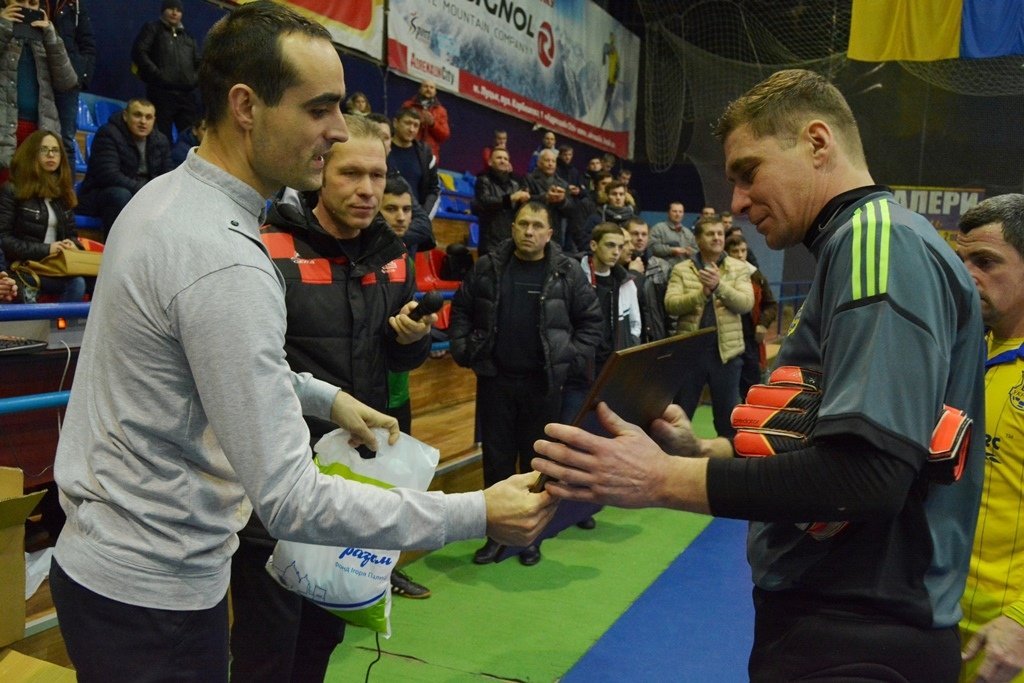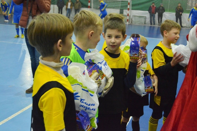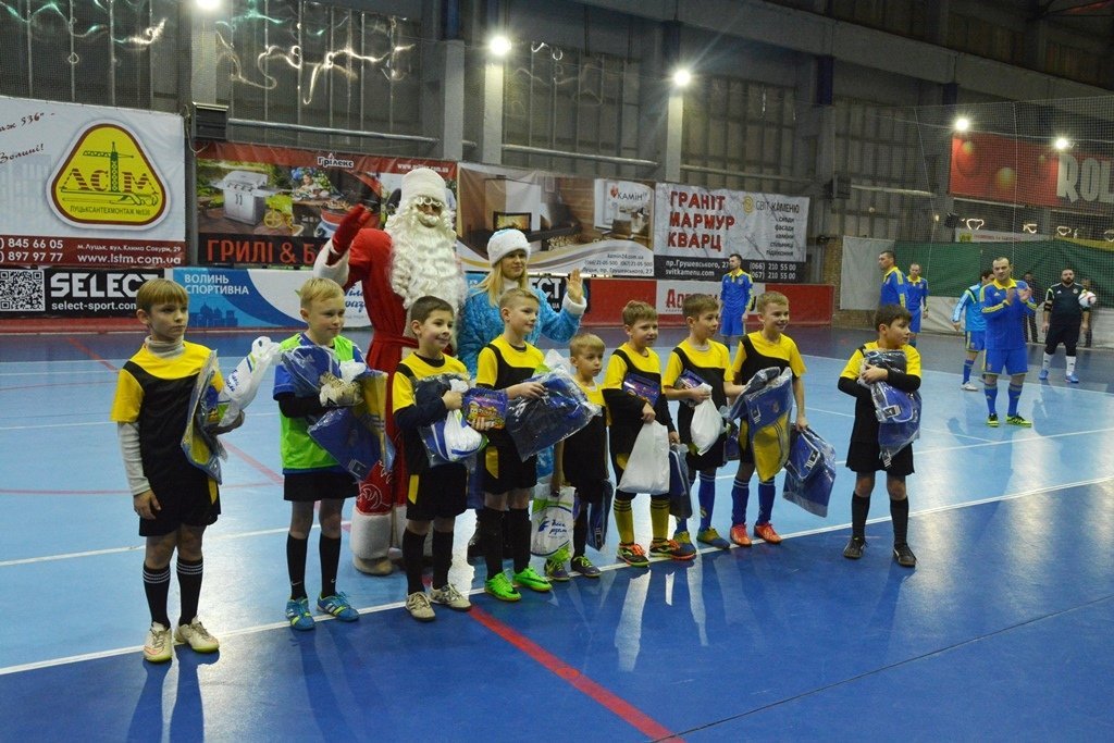 У перерві ж настав час подарунків: гравці дитячої команди “Юніор-Мідас” протистояли команді “Казка”. У складі костюмованої команди був і Кенгуру, і ведмідь Михайло, і “Посіпака” з “Енгрі Бьорд”, однак саме завдяки Коту-голкіперу казкові герої пропустили гол від юних талантів лише одного разу. Тож судді святкового поєдинку – Дід Мороз та Снігуронька – зафіксували перемогу дітей та роздали їм подарунки, а глядачі отримали масу позитиву.Після перерви на поле повернулися легенди спорту і розпочався другий тайм головного протистояння вечора. Втім, не в останню чергу завдяки голкіперу Костянтину Власенку, “Футзал” витримав стартовий штурм суперників, а далі Коридзе та компанія показали перевагу у своєму виді спорту. Підсумковий рахунок – 4:2 на користь футзалістів.