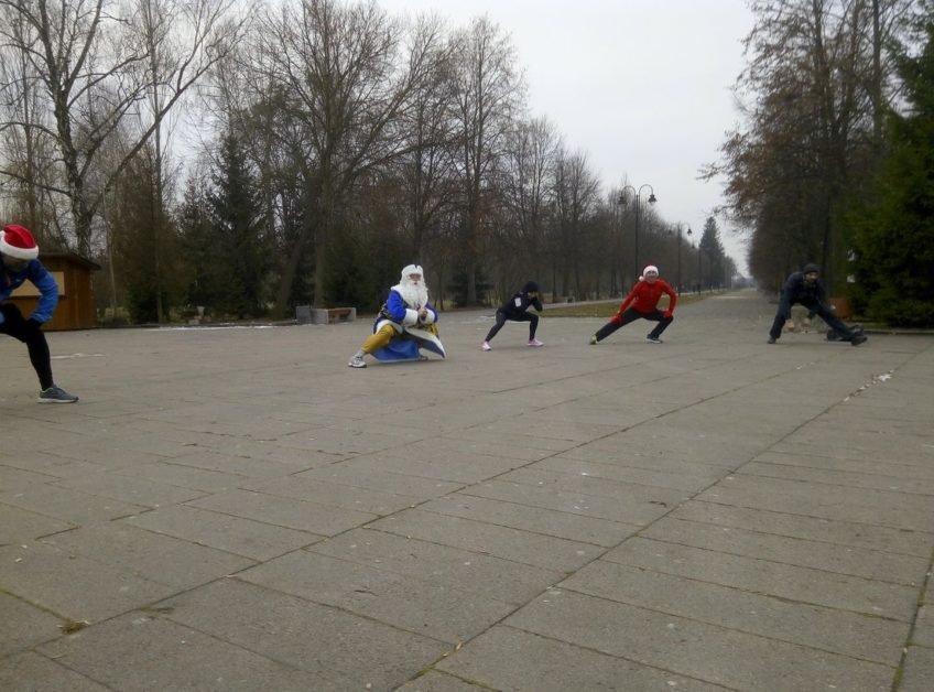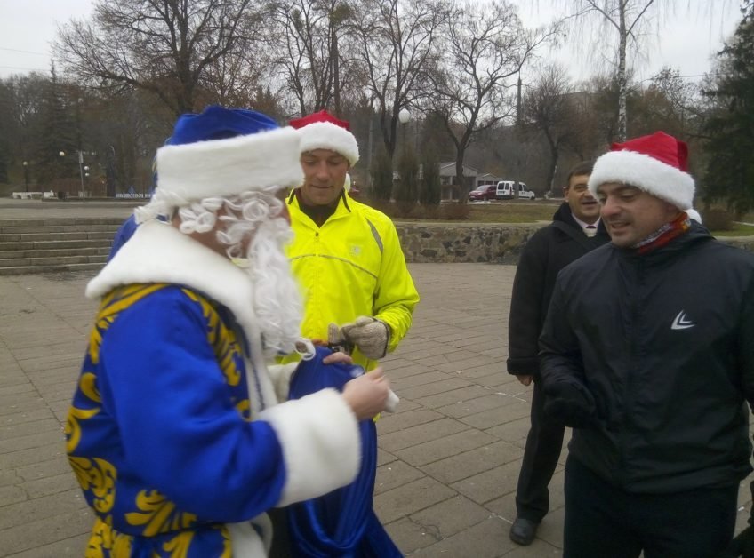 Участь у спортивній акції взяв також актор театр-студії «Гармидер» Павло Порицький, який виконував роль Діда Мороза.