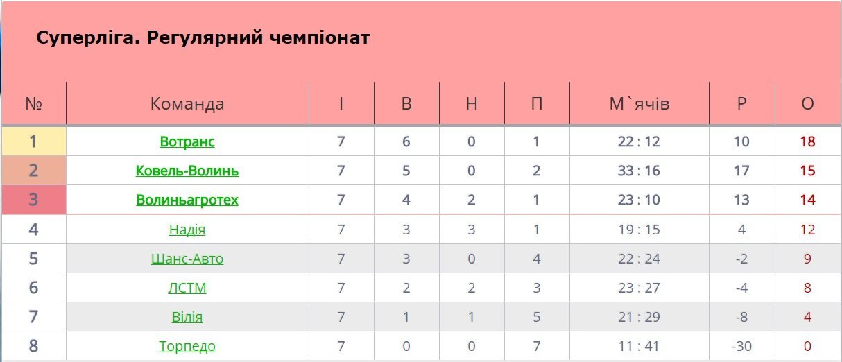 Переможцями регулярної частини чемпіонату в Суперлізі стали гравці луцького «Вотрансу». Після не зовсім вдалого старту команда видала серію з п’яти перемог поспіль, остання з яких – над боратинською «Вілією» з рахунком 4:2. Попри статус головного фаворита змагань за системою плей-офф лучани можуть залишити турнір ще до фіналу, адже теоретично можуть потрапити на ту ж саму «Надію».