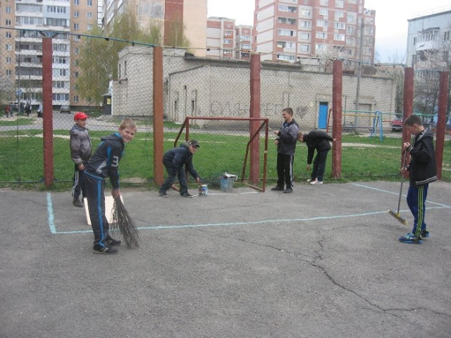 Допомогу міському центру в косметичному ремонті 10 спортивних майданчиків (ремонт сітки огорожі, фарбування, обрізання кущів і дерев, очищення асфальтового покриття майданчиків від трави, вивезення сміття) надавали працівники житлово-комунальних підприємств та обласний центр ФЗН «Спорт для всіх».