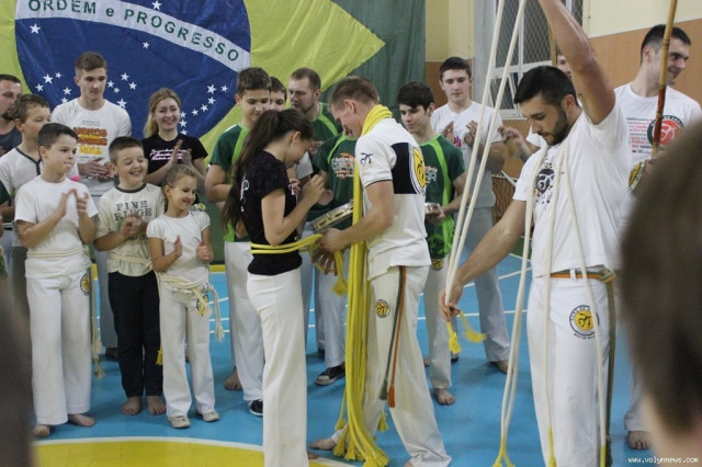 Учні, які займалися капоейрою, отримали чергові ранги у Луцьку сьогодні, 2 листопада. Декому шнур капоейриста вручили вперше.