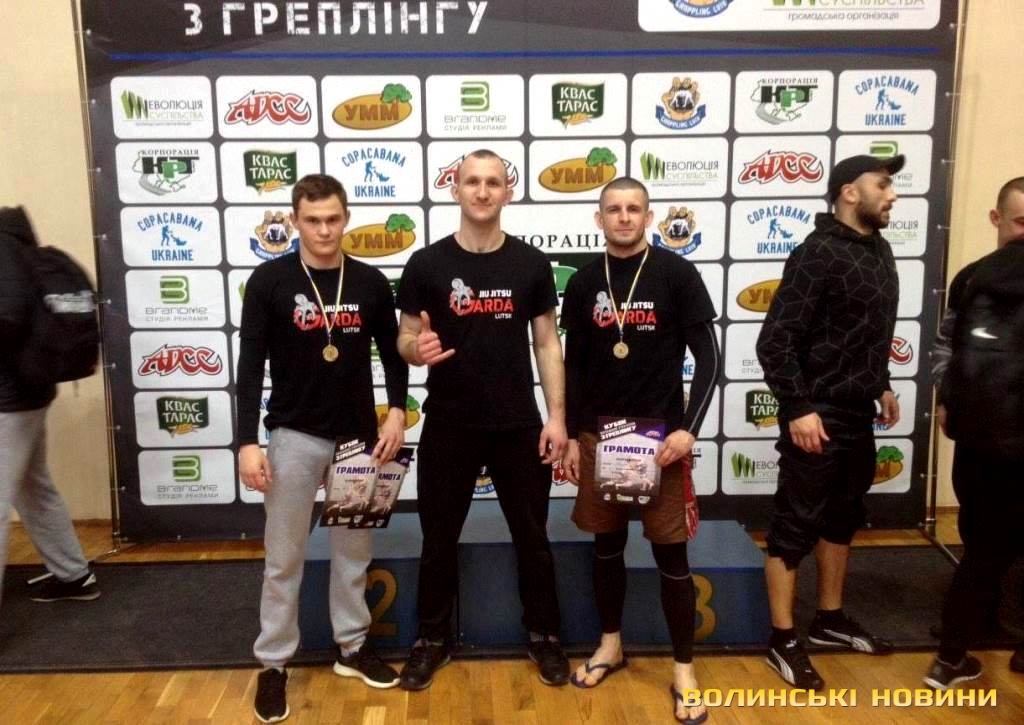 Волинські борці з Клубу джиу-джитсу та греплінгу «GARDA» повернулися з міжнародного турніру «Відкритий Кубок Західної України з греплінгу» переможцями. Так, спортсменам вдалося вибороти 3 золоті нагороди.