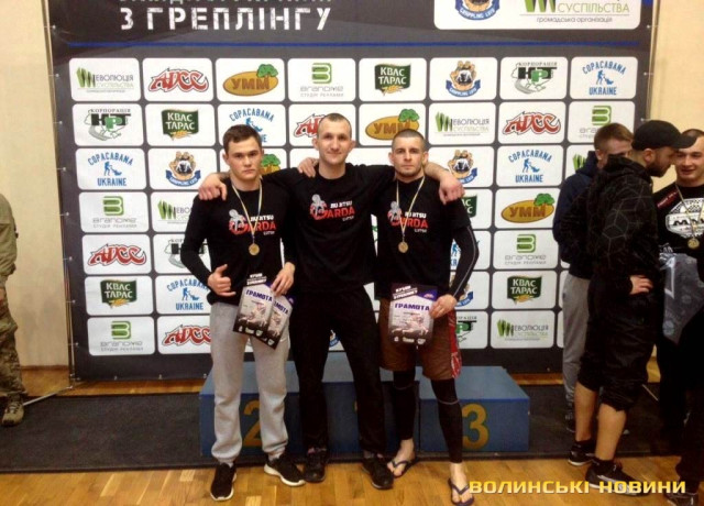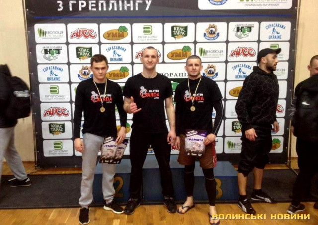 Провівши блискучі сутички, волинські борці з Клубу Джиу-Джитсу та Греплінгу «GARDA» вибороли 2 золоті нагороди в категорії «Б». У вазі до 70 кілограмів - Олександр Устимович, до 76 кілограмів - Михайло Іщук. Також золоту нагороду отримав спортсмен у категорії понад 91 кілограм - лучанин Микола Головатюк (клуб «PITBULL»).