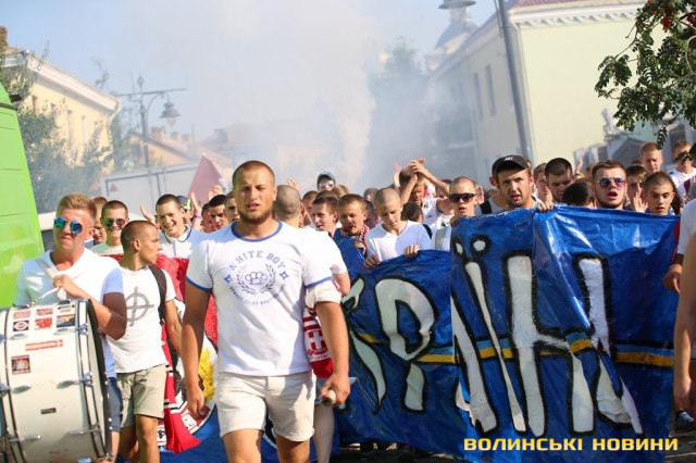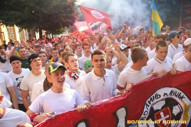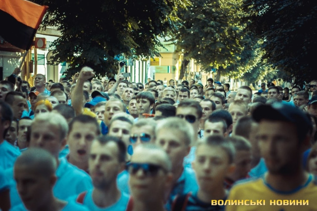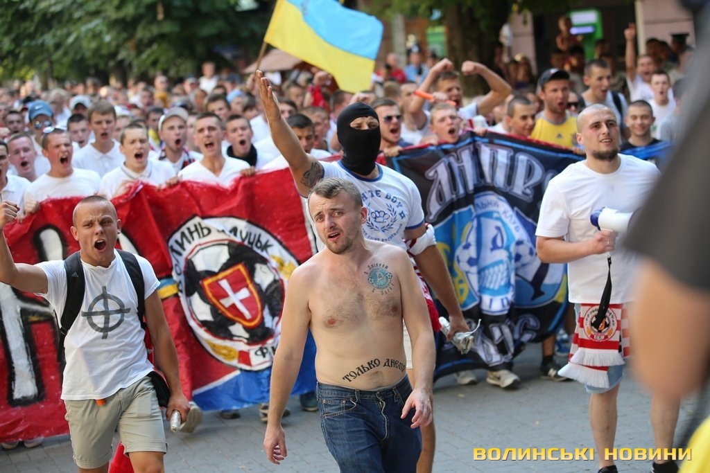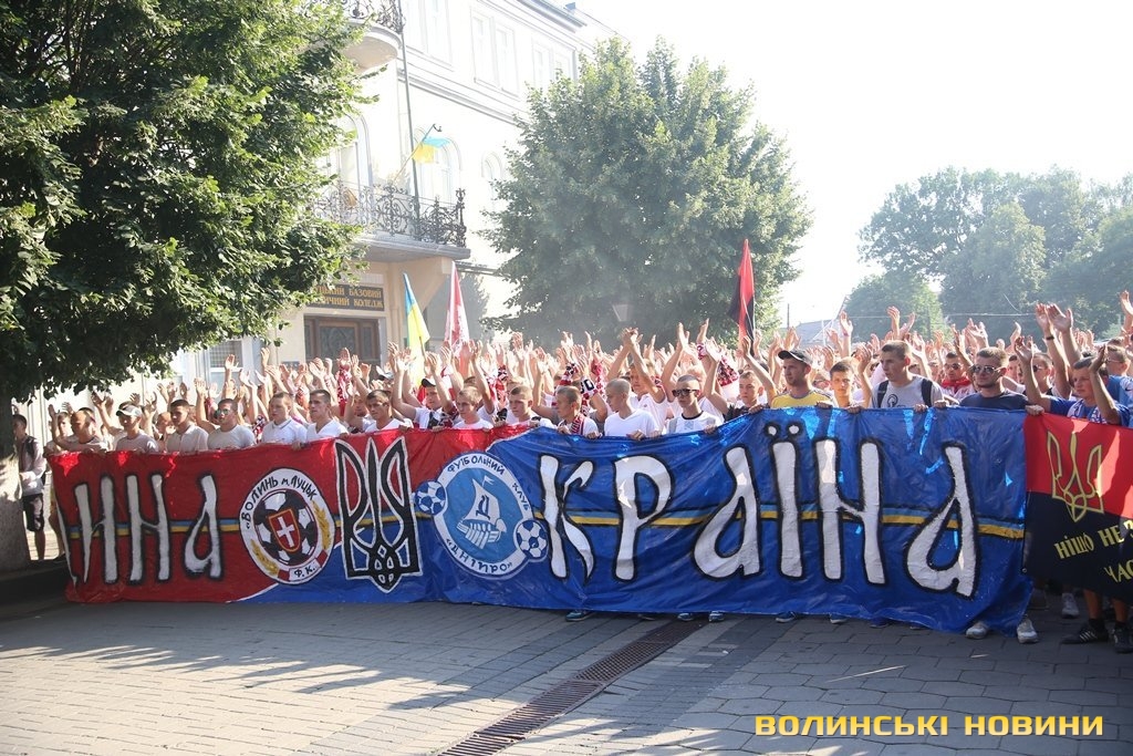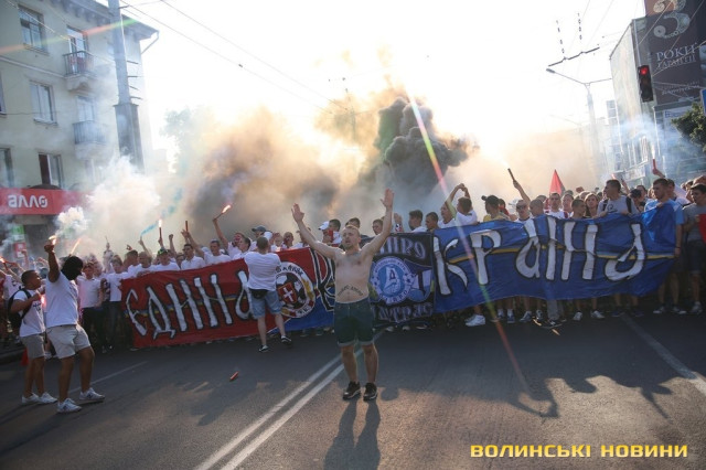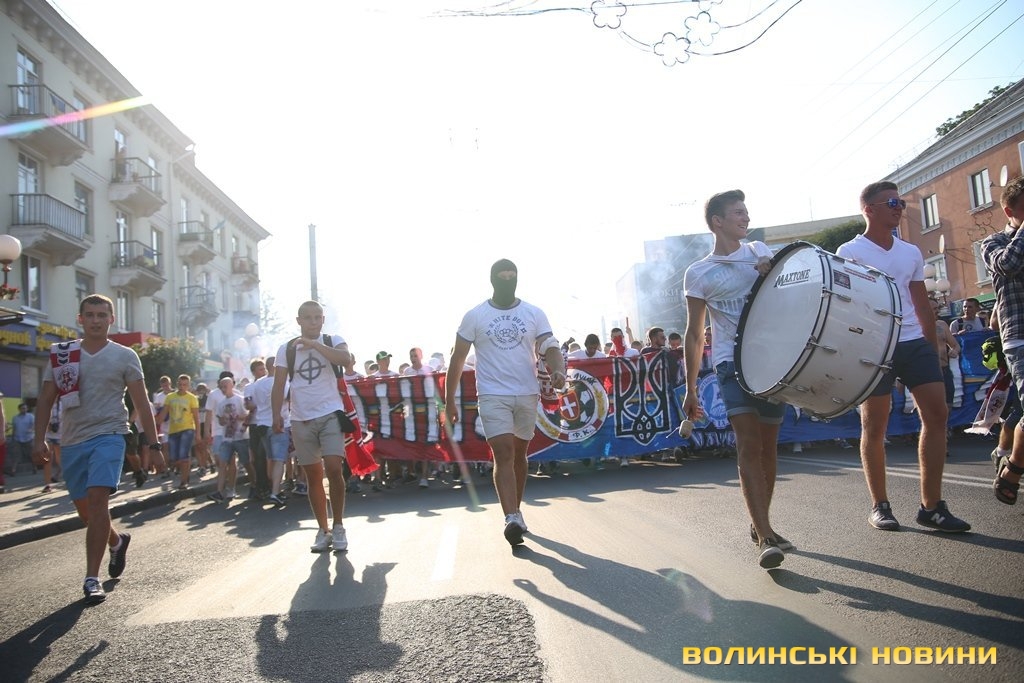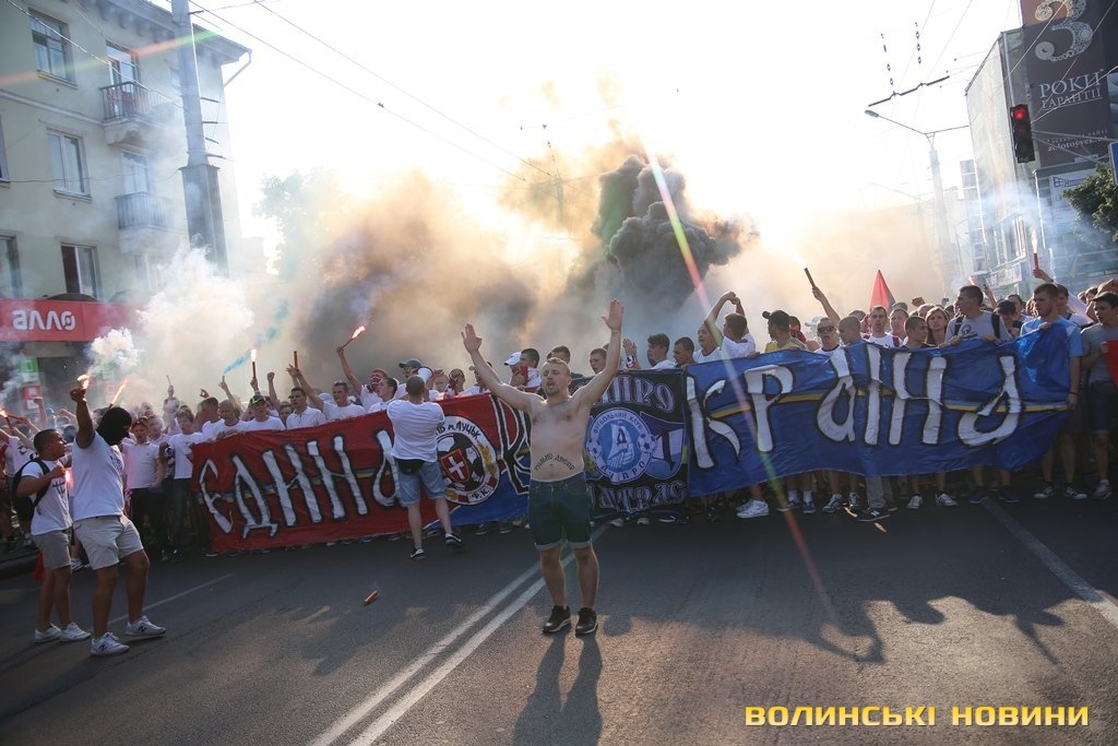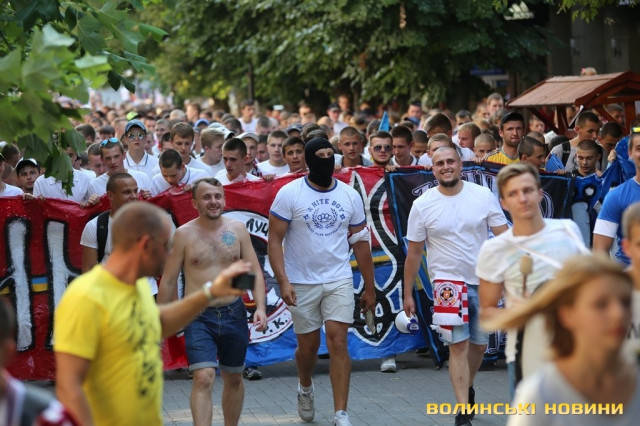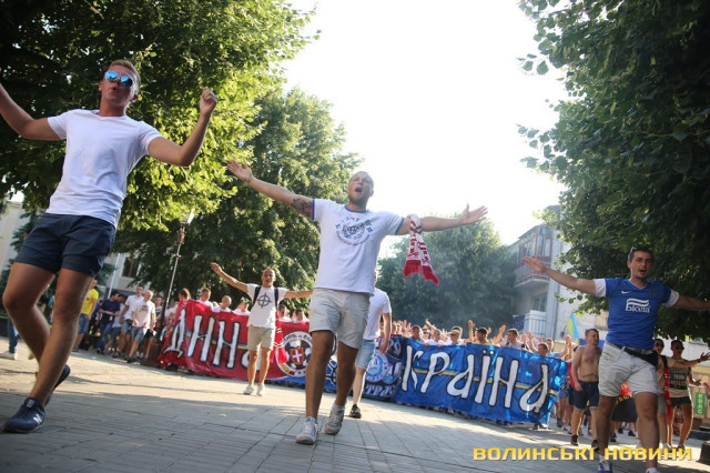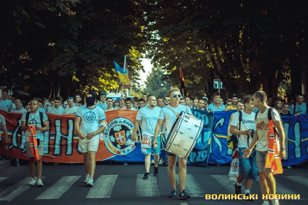 Пліч-о-пліч фанати «Волині» та «Дніпра» пройшли вулицями Луцька у рамках маршу перед грою футбольних команд. Під час дійства звучали заклики до єдності Сходу та Заходу України, а також пісні, в яких молодики висловлювали своє ставлення до Президента РФ Володимира Путіна.