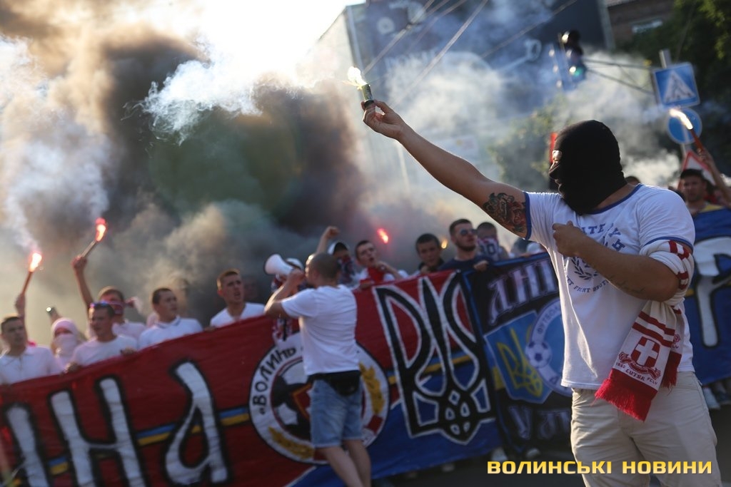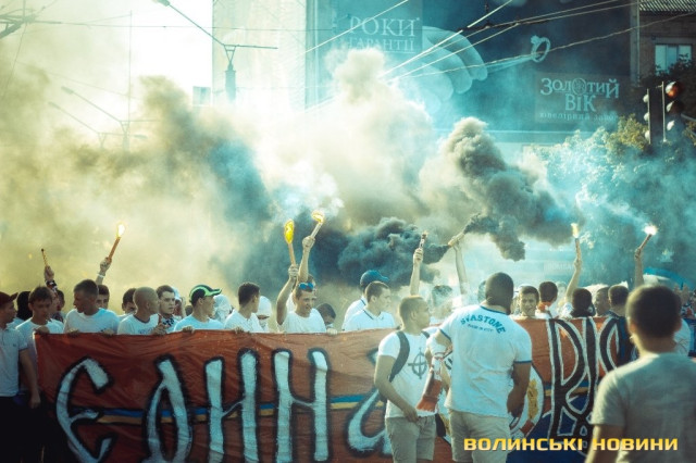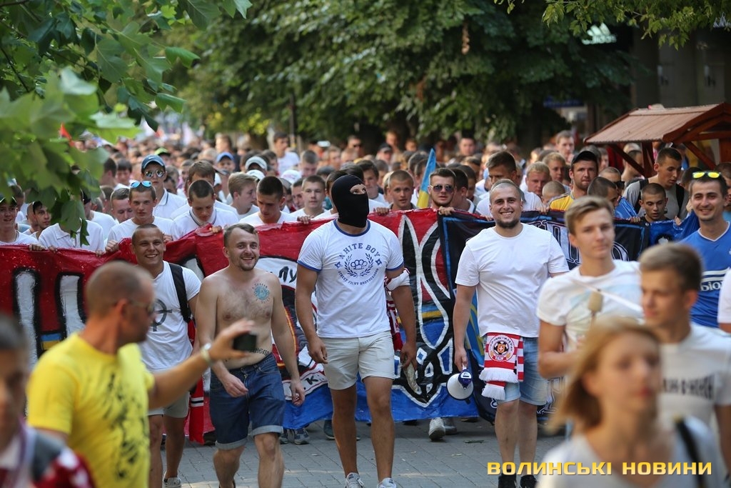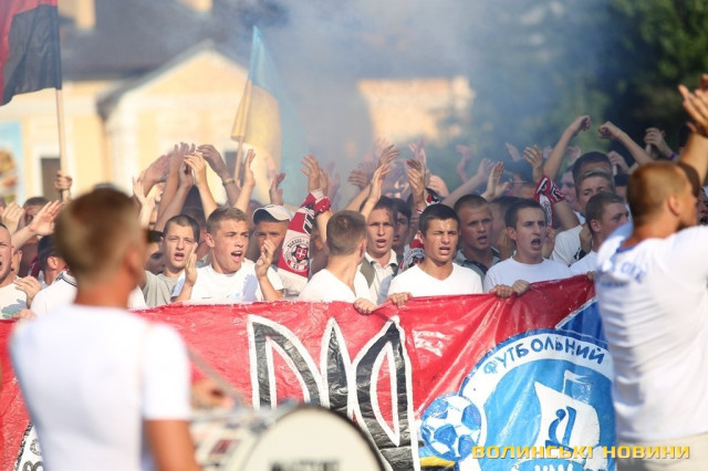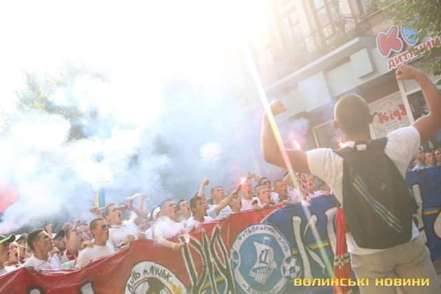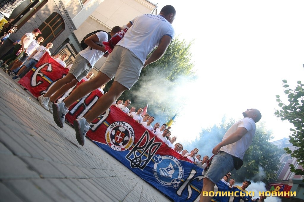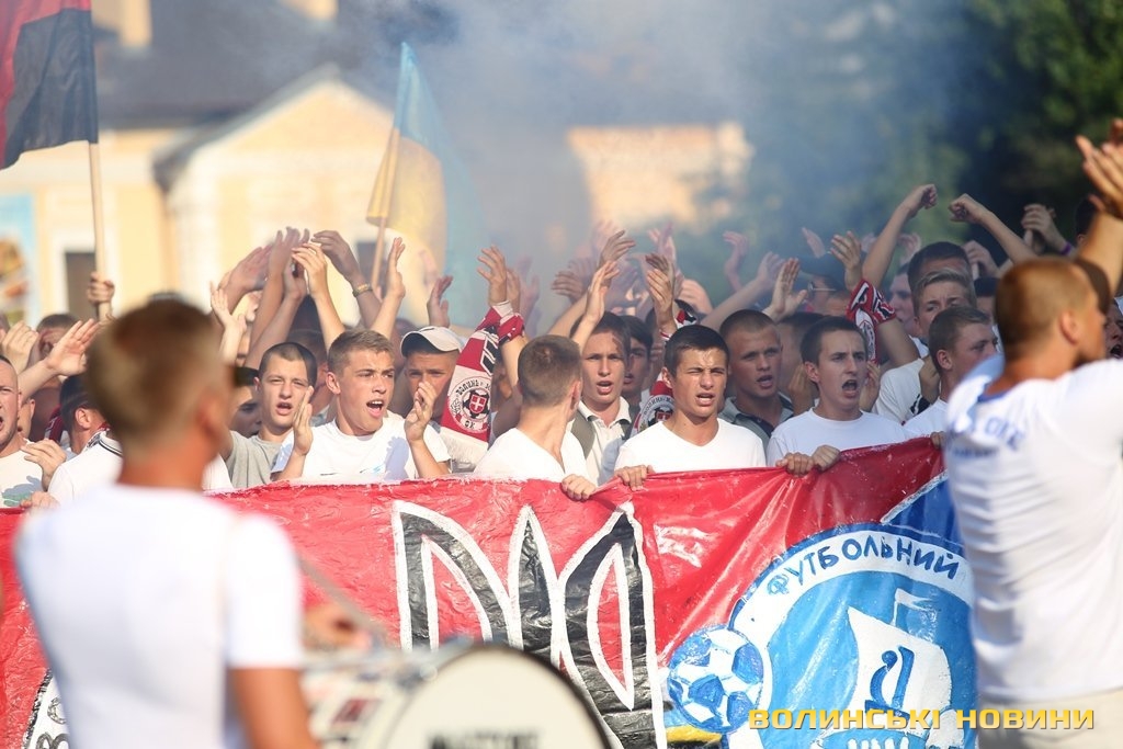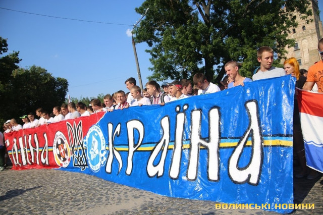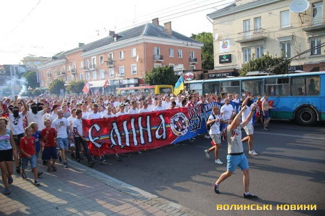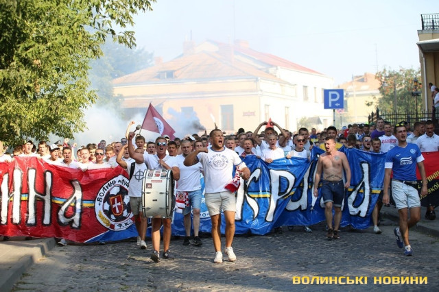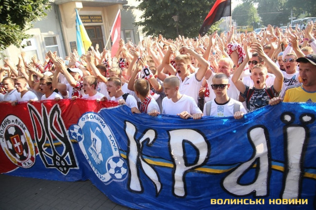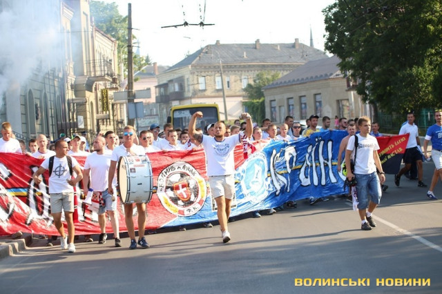 Пліч-о-пліч фанати «Волині» та «Дніпра» пройшли вулицями Луцька у рамках маршу перед грою футбольних команд. Під час дійства звучали заклики до єдності Сходу та Заходу України, а також пісні, в яких молодики висловлювали своє ставлення до Президента РФ Володимира Путіна.