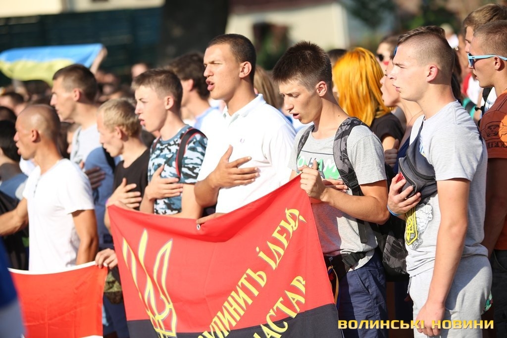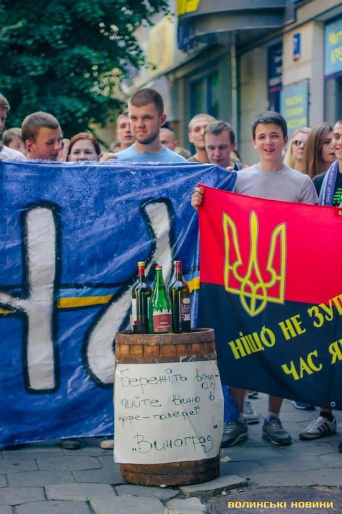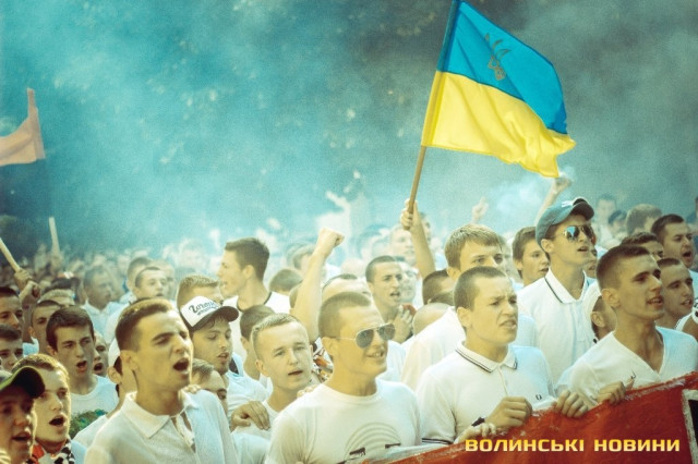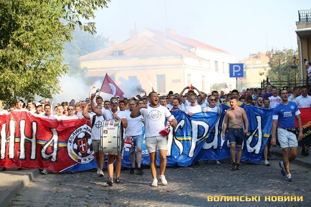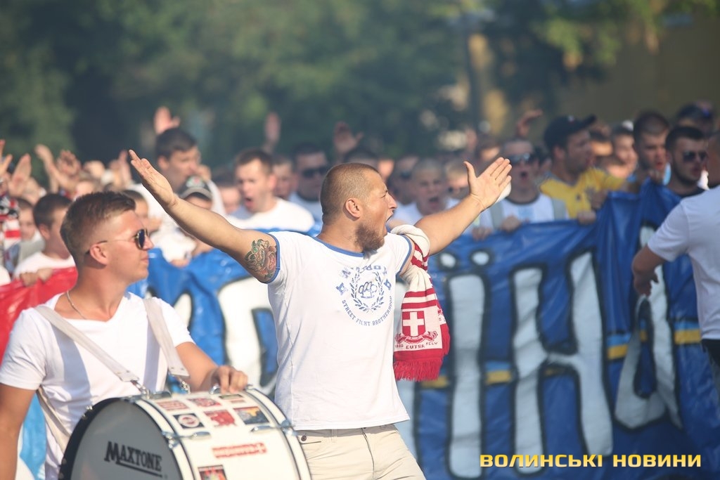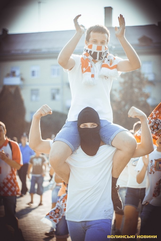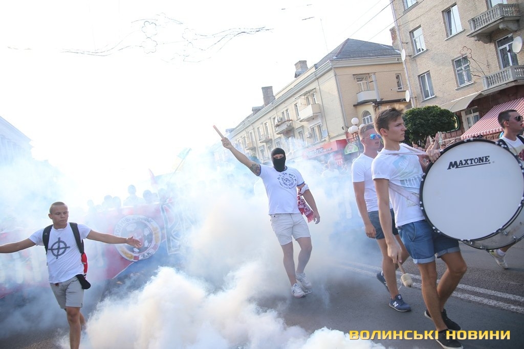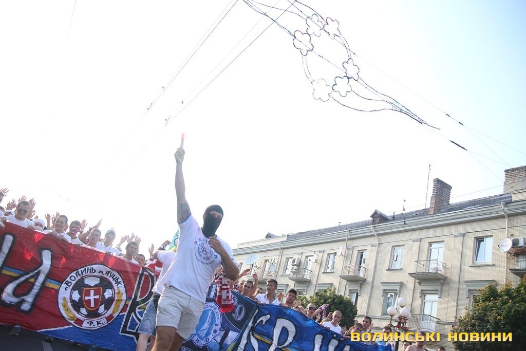 Пліч-о-пліч фанати «Волині» та «Дніпра» пройшли вулицями Луцька у рамках маршу перед грою футбольних команд. Під час дійства звучали заклики до єдності Сходу та Заходу України, а також пісні, в яких молодики висловлювали своє ставлення до Президента РФ Володимира Путіна.