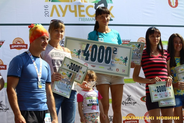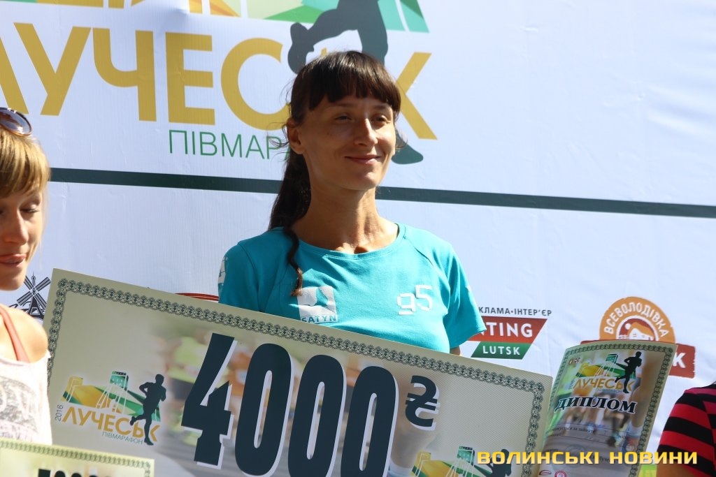 На півмарафонській відстані 21,0975 серед жінок третє місце посіла Ірина Масник (Тернопіль), друге – Юлія Тарасова (Одеса), а перемогу здобула Оксана Оксенюк (Луцьк).