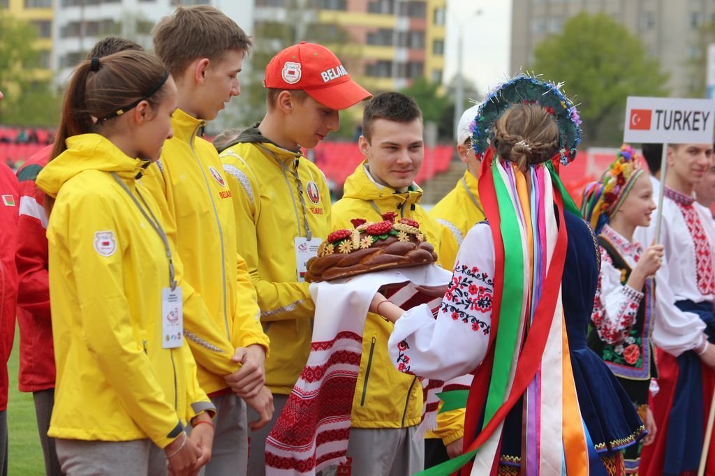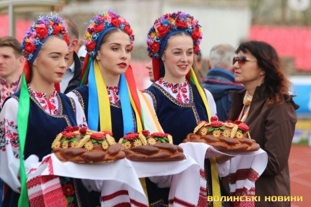 Представники команд-учасниць вишикувались на стартовій лінії для того, аби послухати гімн, який символізує офіційний початок змагань. Опісля, за давньою українською традицією, їх привітали на волинській землі короваєм.