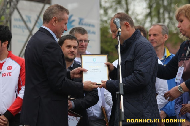 Присутніх привітав і голова правління Фонду «Тільки разом» Олександр Товстенюк.Він зазначив, що сама природа сприяє проведенню міжнародних змагань, які є унікальними для Луцька. Адже на цей день прогнозували не сонячну погоду, а дощ. Гостям дійства він побажав видовищних змагань, а учасникам – наснаги та перемоги.