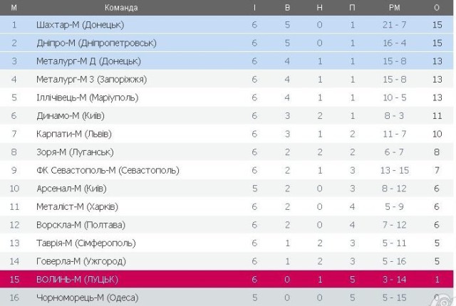 Після шести турів дублери «Волині» мають у своєму складі лише одне здобуте очко і посідають передостаннє місце. Гірше наших земляків поки виступає лише одеський «Чорноморець», молоді гравці якого взагалі ще не здобували очок у нинішньому сезоні.