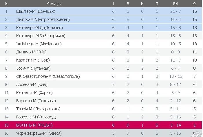 Після шести турів дублери «Волині» мають у своєму складі лише одне здобуте очко і посідають передостаннє місце. Гірше наших земляків поки виступає лише одеський «Чорноморець», молоді гравці якого взагалі ще не здобували очок у нинішньому сезоні.