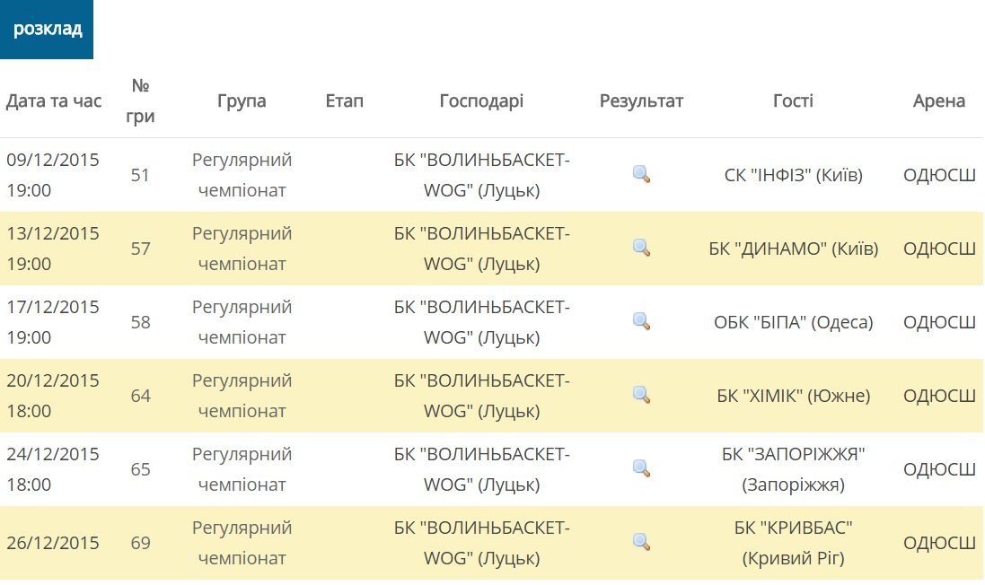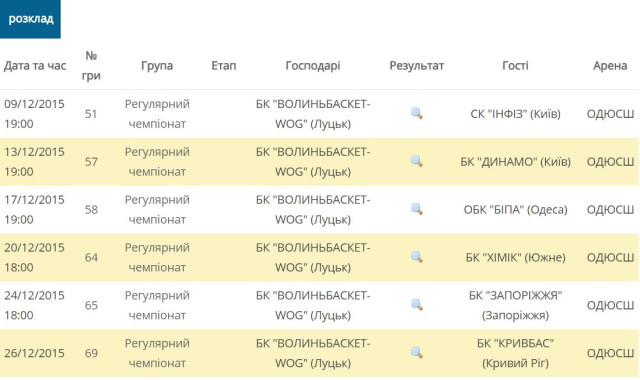 Розклад домашніх ігор БК «Волиньбаскет»