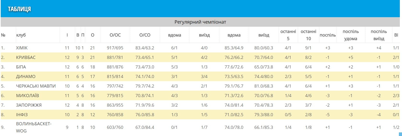 Турнірна таблиця Суперліги