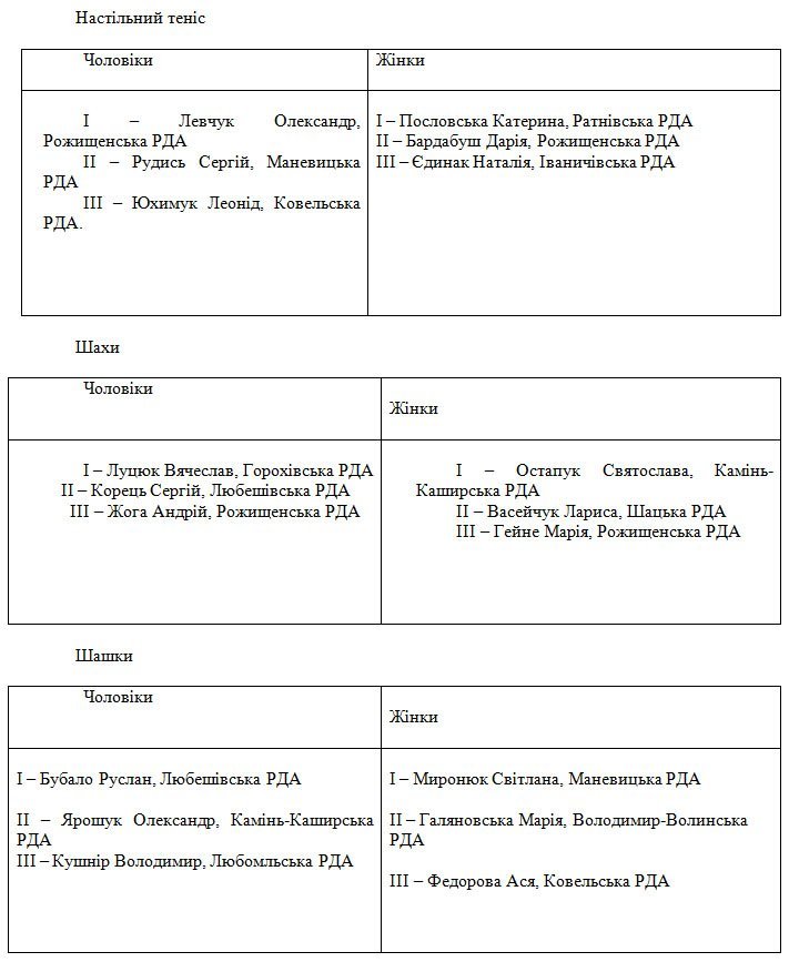 У змаганнях з фут залу переможцями стала команда Горохівської РДА, друге місце у команди Маневицької РДА, третє – у команди Шацької РДА.