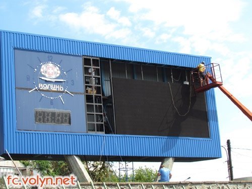Табло площею 24 квадратних метри встановлюють на домашній арені луцької «Волині». Воно працюватиме в режимі телевізора, тобто транслюватиме відеоролики, заставки, тощо.
