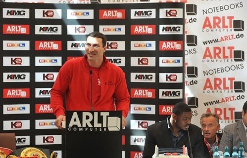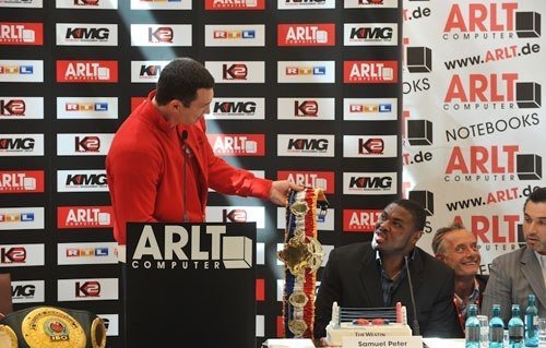 Чемпіон світу в суперважкій вазі за версіями WBO, IBO і IBF Володимир Кличко і претендент на титули нігеріець Семюель Пітер перед боєм, який відбудеться 11 вересня у Франкфурті, провели прес-конференцію.