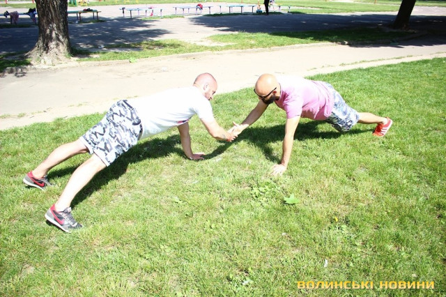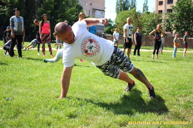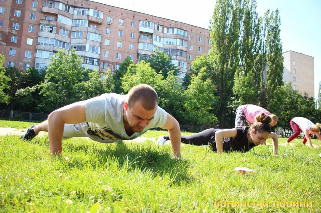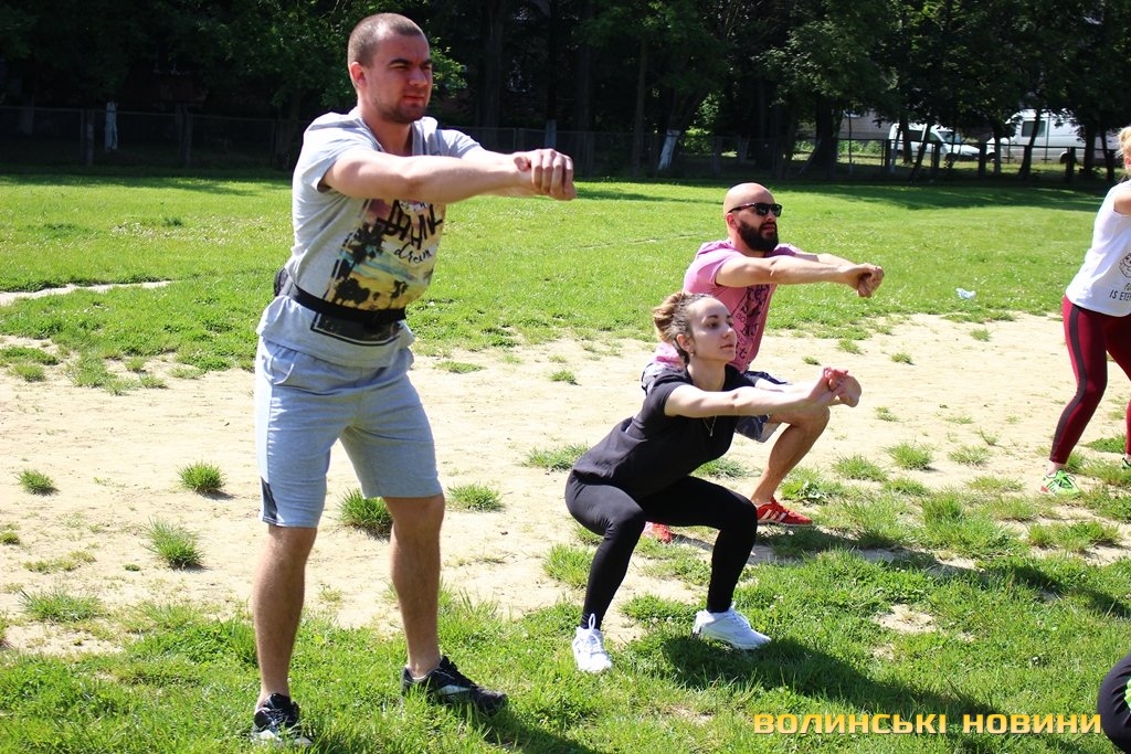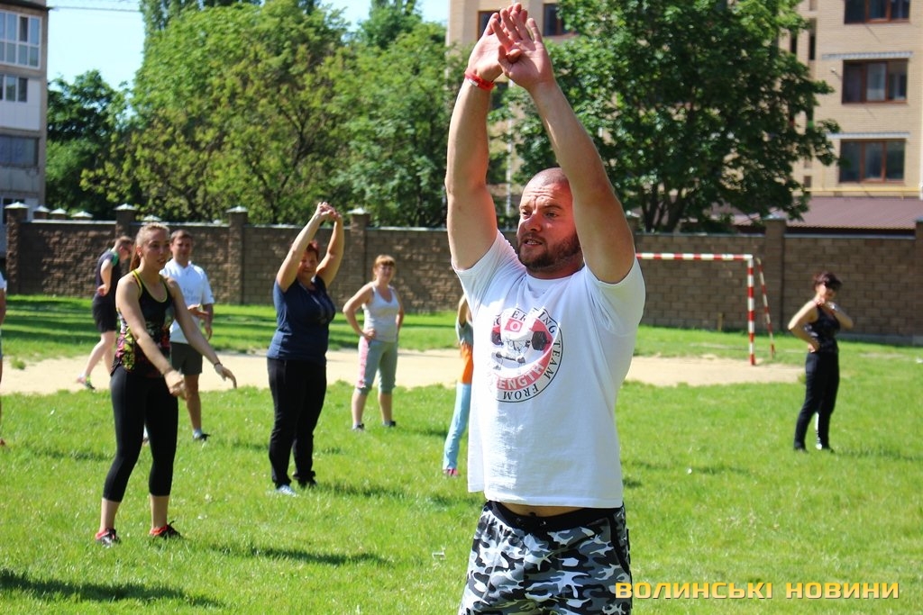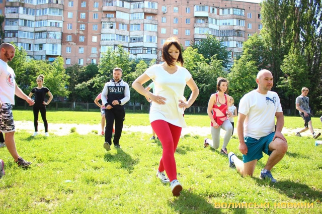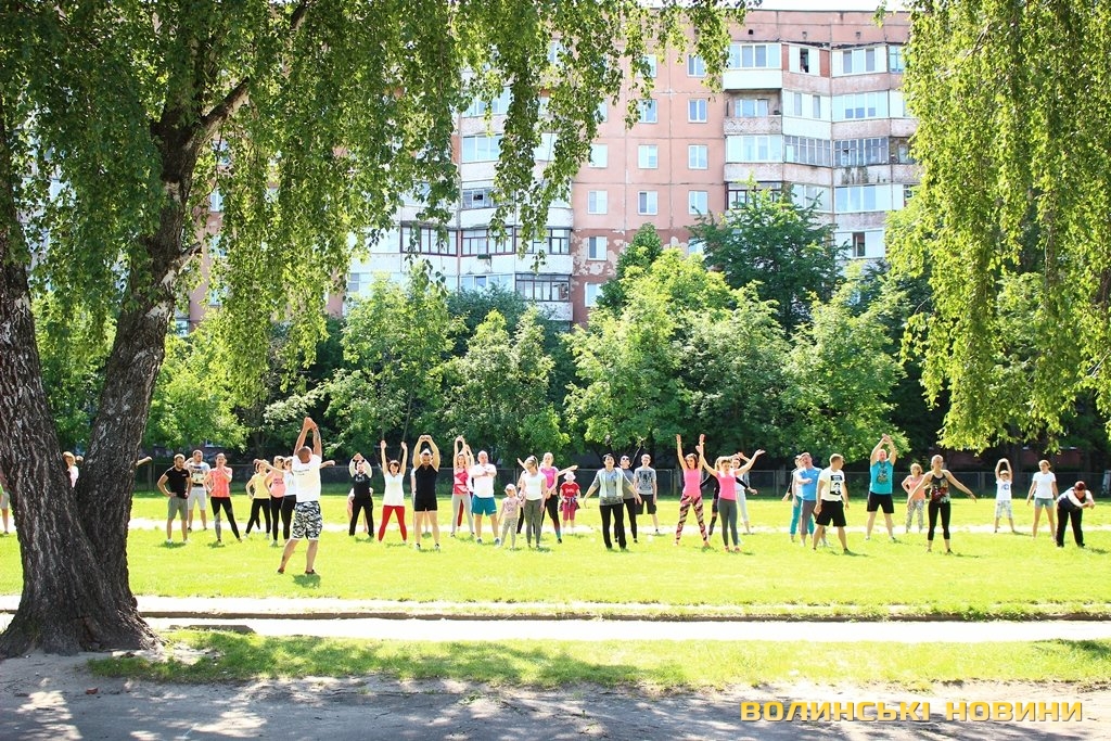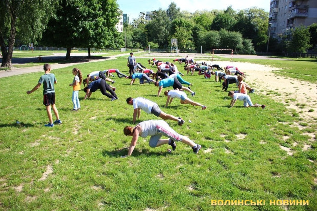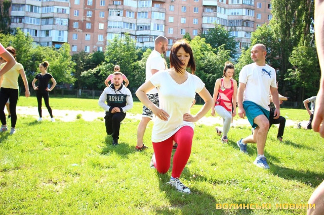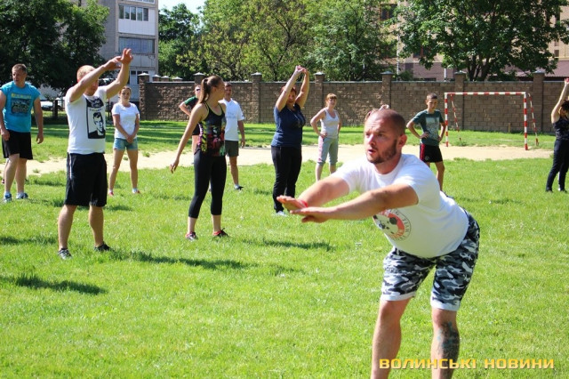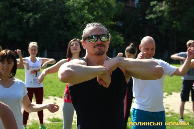 Півсотні мешканців 33-го кварталу у Луцьку зібралися для спільного тренування під відкритим небом із заслуженим тренером України Олегом Хом’яком. Для дорослих та малих підготували динамічне тренування, аби кожен міг дати м’язам тонуc та зарядитися позитивом на цілий день.