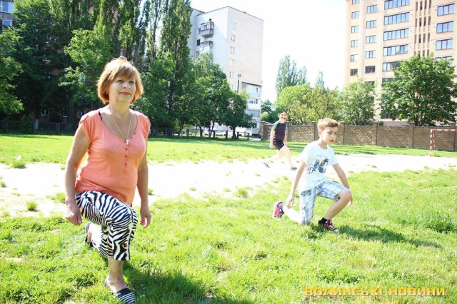 «Я сюди прийшла вперше. Дізналася про це тренування від вчителя фізкультури, який сказав, що в нашій школі щонеділі такі зарядки відбуваються, то й прийшла сюди з братиком. Найбільше мені сподобалися вправи для розтяжок. Я вважаю, що тут дуже цікаво та весело і я взагалі сьогодні не втомилася та обов’язково прийду наступного разу», - запевнила юна спортсменка.Зі всією родиною на ранкове тренування прийшла пані Надія. Поряд з нею донька, зять та два внуки. Жінка розповідає, що приходить сюди кожні вихідні.