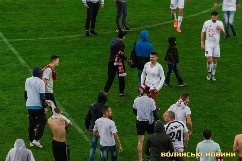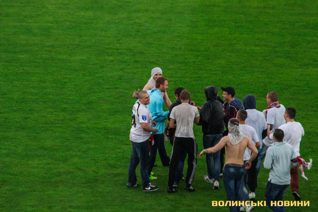 Незважаючи на проливний дощ, відчутну фізичну перевагу гостей матчу та розуміння того, що цей поєдинок є останнім матчем, який ФК «Волинь» зіграє на домашній арені, віддані вболівальники до останньої хвилини зустрічі були з улюбленою командою. А після фінального свистка найпалкіші навіть вибігли на поле, аби подякувати за гру.