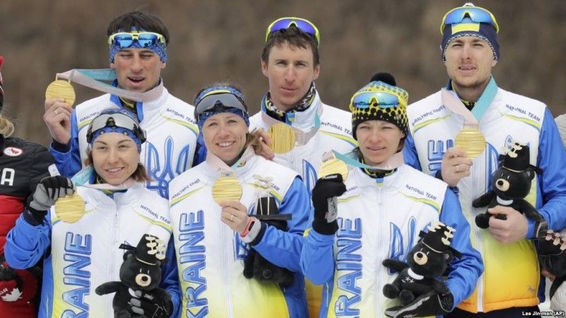 Віват українцям! Паралімпіські чемпіони змішаної естафети 4 по 2,5 кілометра Пхьончхана-2018 Юрій Уткін, Людмила Ляшенко, Юлія Батенкова-Бауман та Оксана Шишкова.