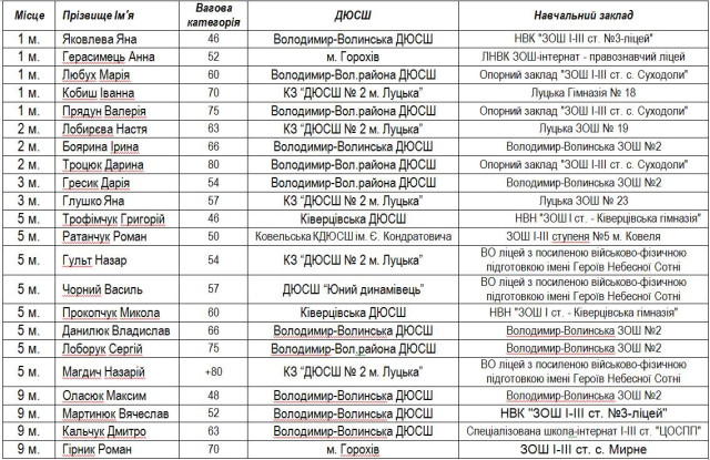 Результати виступів боксерів Волині.Таким чином, 5 боксерів з Волині вибороли право у складі збірної команди України взяти участь у світовій Гімназіаді.