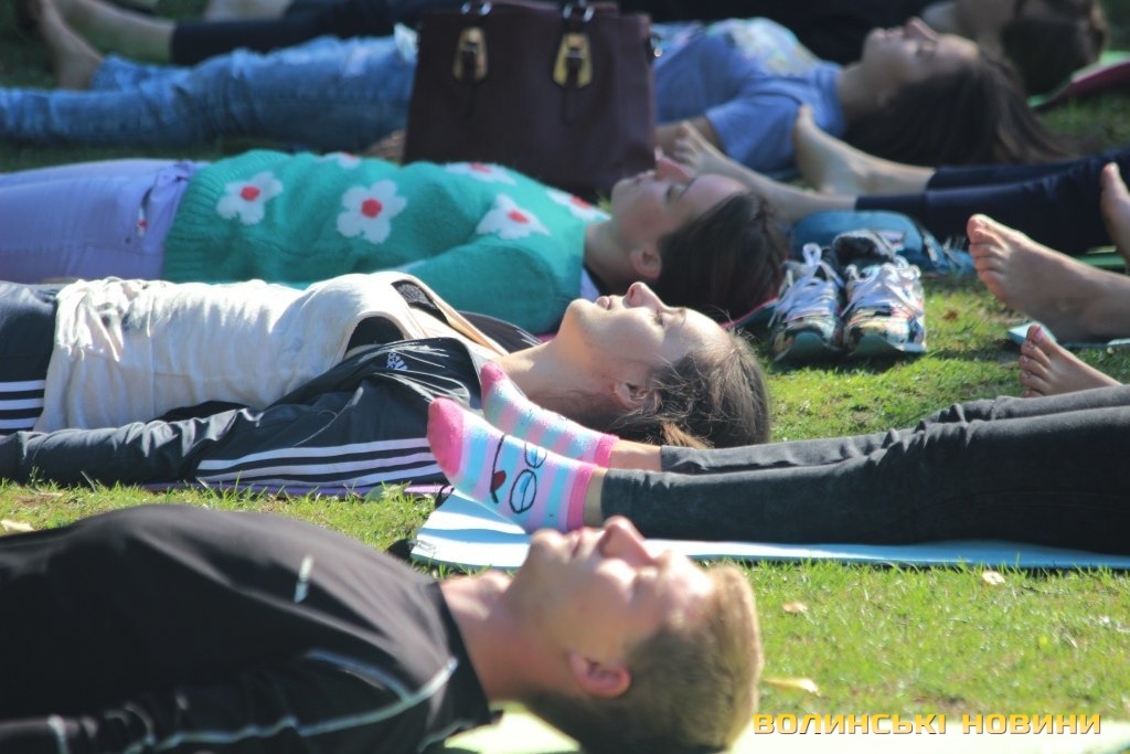 Інструктор з йоги Христина Губська на початку заходу поцікавилася, хто вже займався йогою раніше. Як виявилося, для більшості учасників це заняття стало першим. Вона наголосила, що важливо бути усміхненим під час виконання асан.