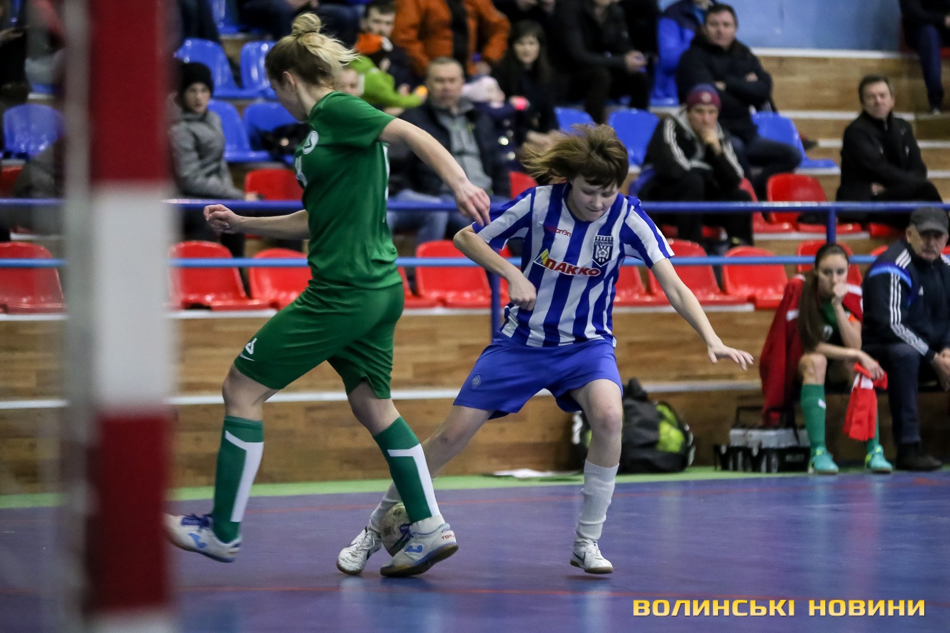 Поєдинок розпочався з атаки луцьких футзалісток: Юлія Сардарчук заробила та сама ж виконала штрафний удар, але він прийшовся точно у стінку з гравців «ПЗМС». За декілька хвилин Юлія отримала передачу від голкіпера Діани Городюк, але втекти від захисника суперника їй не вдалося. А ще за хвилину після цього двічі поспіль пробивали по воротах суперника спочатку капітан «Легіону» Олена Хомич, і знову ж таки Сардарчук – безрезультатно.