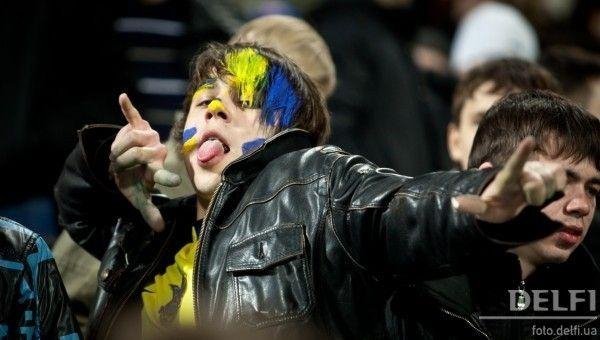 На стадіоні імені Лобановського в Києві під час футбольного матчу Україна - Італія угруповання вболівальників спочатку спалила прапор Італії, а потім почала бійку на трибуні.