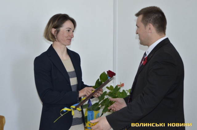Привітали спортсменку також голова Волинської обласної ради ВФСТ «Колос» АПК України Анатолій Кліш, директор Волинської обласної школи вищої спортивної майстерності Андрій Авраменко, президент Волинської Федерації каное Андрій Шевчука, азаступник голови Волинської ОДА Сергій Кошарук вручив Марії та тренерам подяки.