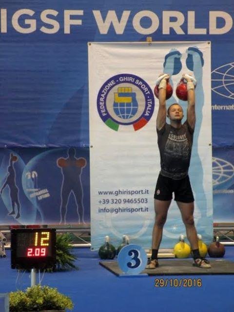 На жаль, для того щоб стати чемпіоном світу ще й у «двоборстві» спортсмену та його тренеру забракло досвіду змагань такого високого рівня. Велике бажання не тільки перемогти, а й при цьому виконати норматив майстра спорту спричинило до помилки при виконанні вправи «ривок». Виконавши 45 підйомів гирі вагою 32 кг лівою рукою спортсмен зачепив гирею поміст, в результаті замість «золота» лише «бронза» та третє місце чемпіонату Світу серед юніорів у двоборстві.