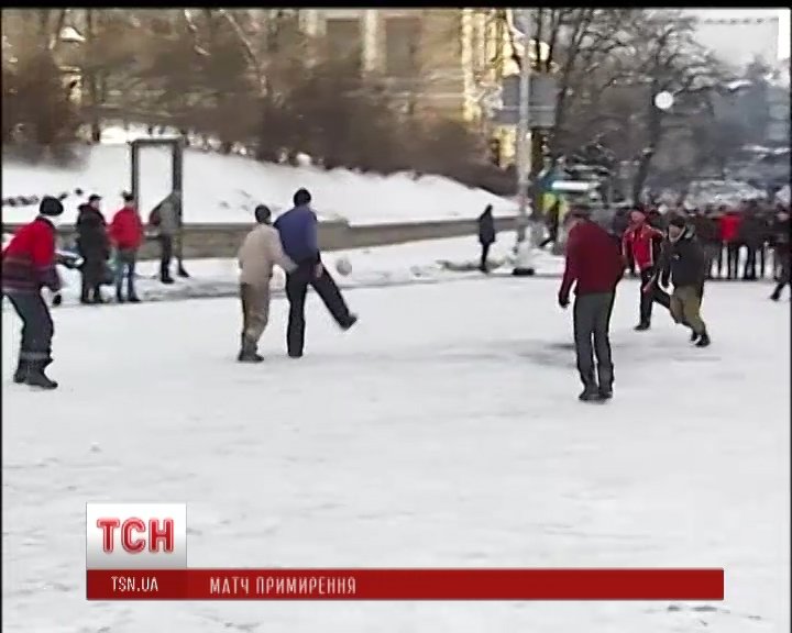 Ідея полягає в тому, щоб поле бою перенести зі збройного на мирне, і в такий спосіб нарешті залагодити конфлікт між обома сторонами. Протестувальники на Грушевського згодні, і поки триває перемир'я, вже почали тренуватися прямо на Європейській площі. Ганяли м'яча і силовики. Але грати у футбол із євромайданівцями наразі не збираються.