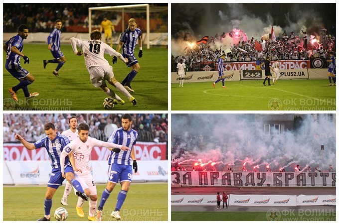 Матч Волині із чвертьфіналістом цьогорічної Ліги Європи зібрав попри холоднечу чималу аудиторію. Перші хвилини гри показали настрій 12-го гравця «Волині». Ультрас кілька днів готували своє фаєр-шоу, яке, до слова, було безпечним для учасників матчу і глядачів. Фани «хрестоносців» вздовж 14-17 секторів підсвітили велетенську цитату із поезії Лесі Українки «За правду, браття, єднаймось щиро».До Луцька на гру прибуло й приблизно 250 ультрас «Динамо». Приємно, що дружба і приязнь між фанатами українських клубів триває, й вболівальники перегукувалися патріотичними «зарядами» і, звісно, ж лихим словом згадували біснуватого диктатора північного сусіда України.
