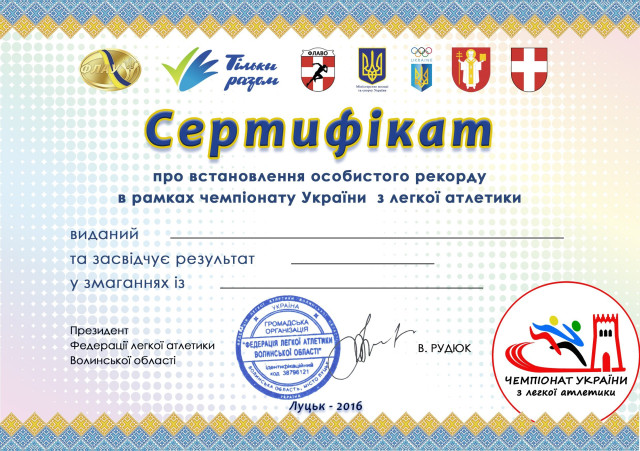 Фото сертифікату, який отримуватимуть учасники розважальної легкоатлетичної програми під час змагань: