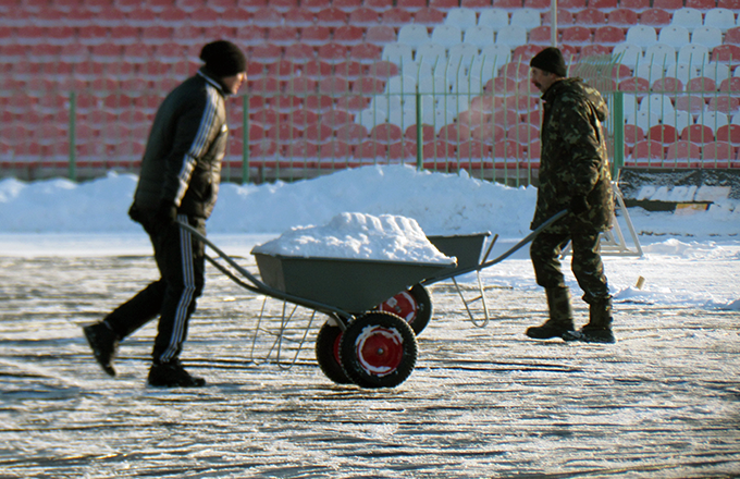 Попри справжню зиму, яка прийшла до Луцька ще в середині листопаду, газон не додасть зайвих клопотів футболістам. Відразу після матчу із київським «Динамо»26 листопада поле затягли спеціальною плівкою.