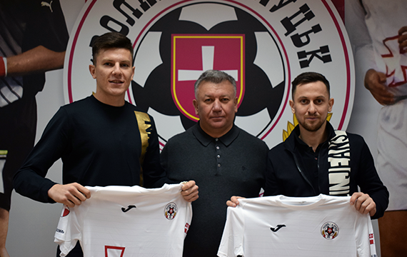 На фото: новачки «Волині» Василь Курко (зліва) та Євген Заричнюк (справа) разом із спортивним директором клубу Валентином Кошельником (у центрі).