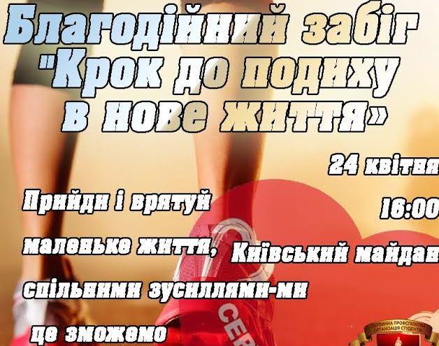 «Цього року вперше у місті відбудеться благодійний забіг для збору коштів на обладнання недоношеним діткам в обласну дитячу лікарню. Спільними стараннями студентів, учнів чи звичайних перехожих ми зможемо врятувати ще одне життя. Сьогодні це просто малюк, якого рятуємо ми, а завтра це людина з великої букви, яка не один раз зможе врятувати нас», – звертаються організатори до небайдужих лучан.