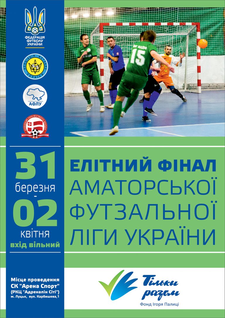 З 31 березня по 2 квітня у Луцьку на майданчиках «Арена Спорт» (РКЦ «Адреналін Сіті») відбудеться елітний фінал Аматорської футзальної ліги України. Така непересічна спортивна подія стала можливою завдяки ентузіазму та старанням Асоціацій футзалу України та Волинської області, Аматорській футзальній лізі України та за підтримки Фонду Ігоря Палиці «Тільки разом».