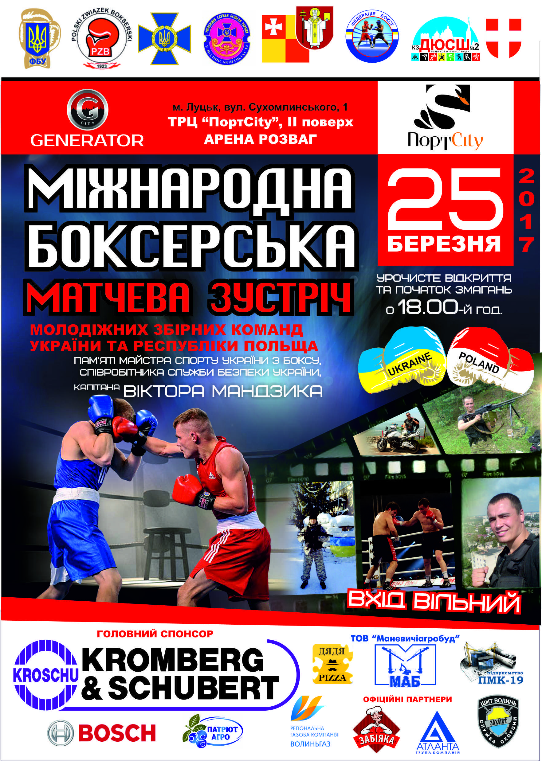 У змаганнях візьмуть участь боксери з молодіжних збірних команд України та Республіки Польща у десяти вагових категоріях. Серед учасників – переможці й призери чемпіонатів світу та Європи. У складі збірної команди України виступатимуть два волинських боксера, вихованці КЗ “ДЮСШ № 2 Луцької міської ради”, учні Волинської обласної школи вищої спортивної майстерності Яків Левчик (в/к 75 кг) та Вадим Пінчук (в/к 81 кг).