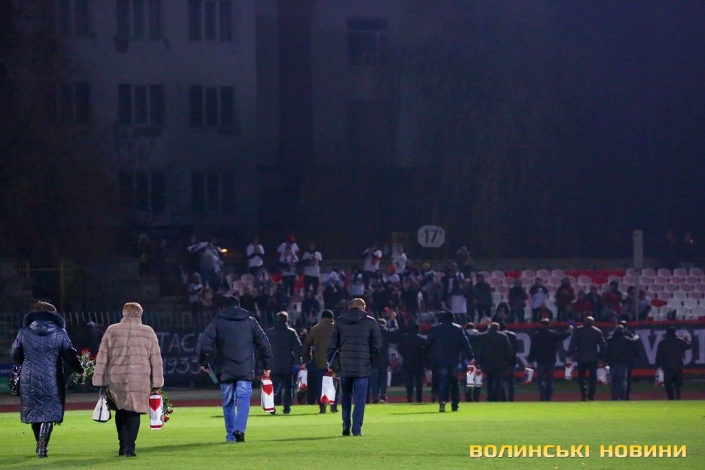Потому гравці, серед яких були рекордсмен «Волині» за зіграними матчами Олег Федюков, кращий бомбардир того сезону Володимир Дикий та інші легендарні для волинського футболу особистості, отримали подяки від обласної ради та пам’ятні подарунки від Федерації футболу Волині. На завершення гравці у повному складі підійшли подякувати за підтримку сучасному фан-сектору та здійснили «коло пошани» стадіоном.