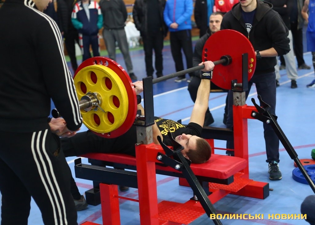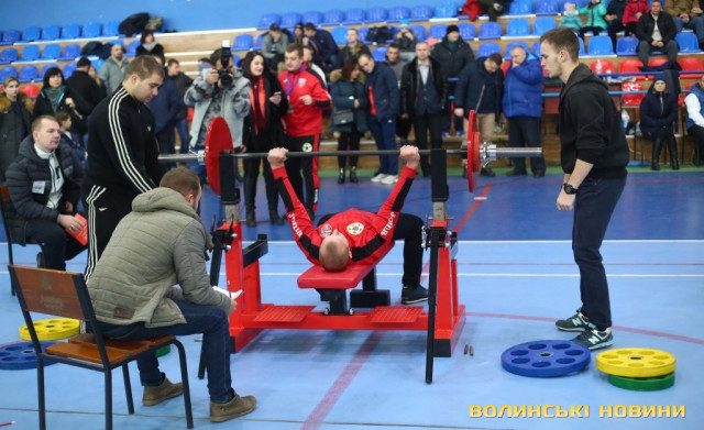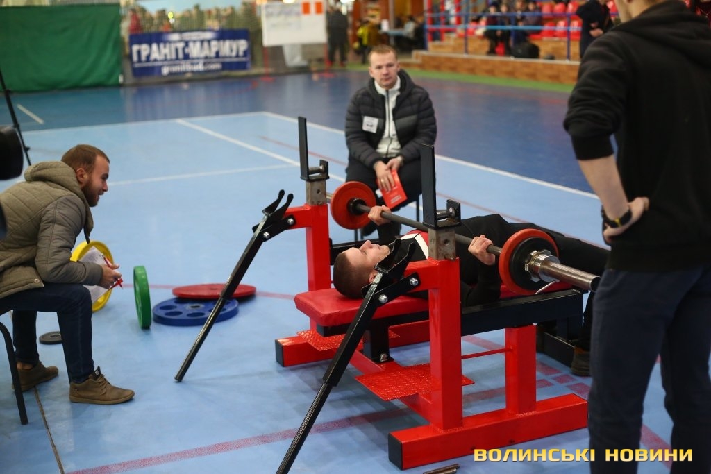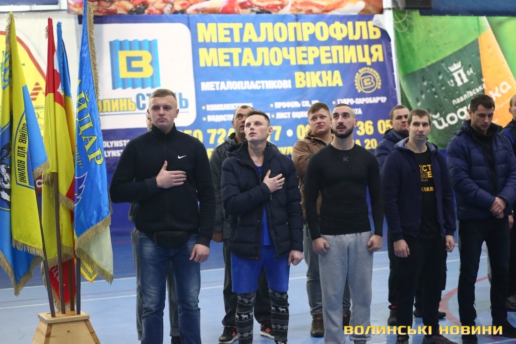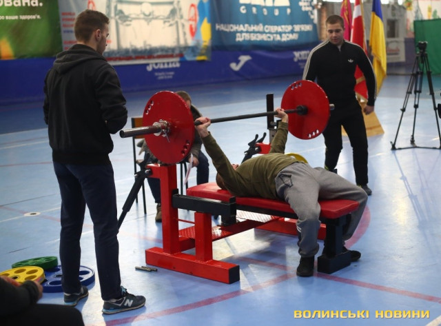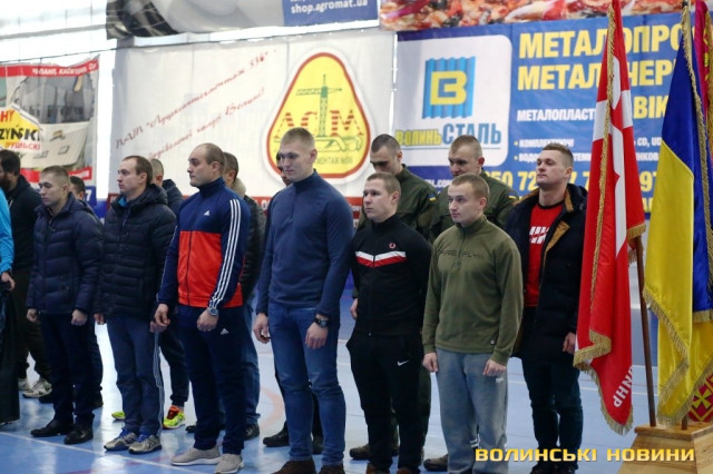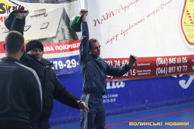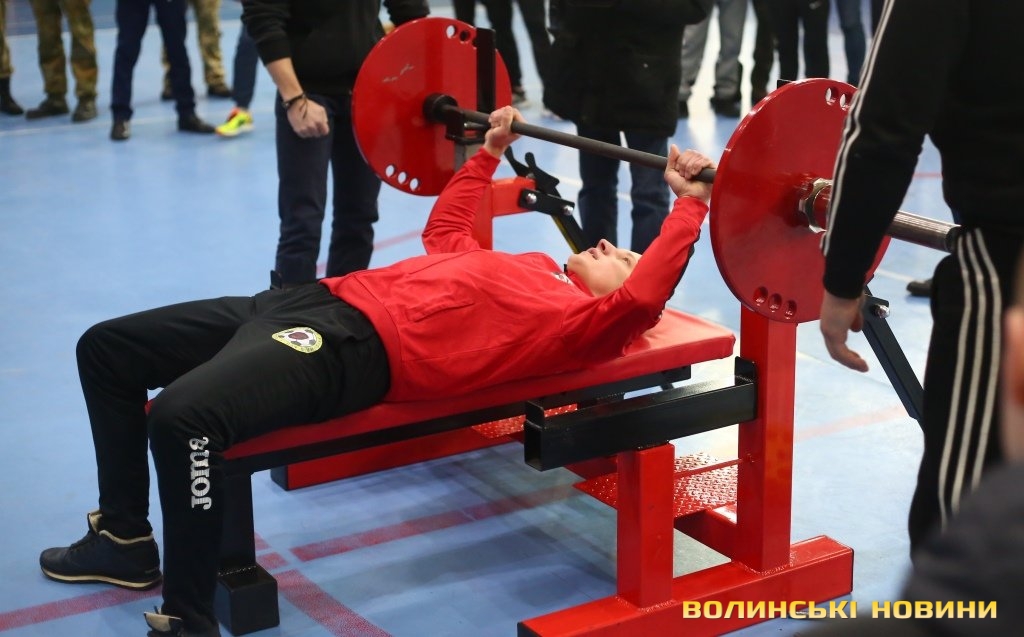 Військові та ветерани АТО змагаються в армреслінгу, пауерліфтингу та гирьового спорту під час турніру «Сталева воля» пам'яті Олега Твердохліба (бійця батальйону «Айдар», попереднього Голови громадської спілки «Спілка воїнів АТО Волині»).