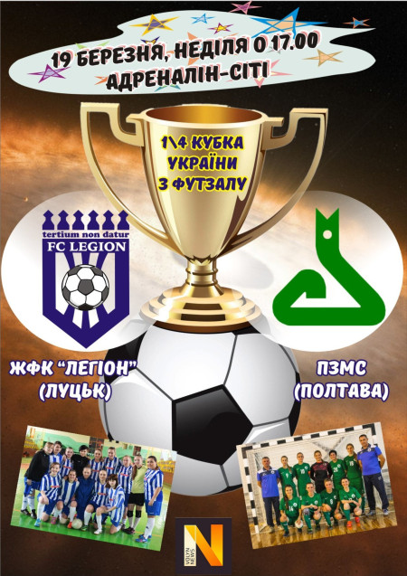 Цієї неділі у Луцьку дівчата з ЖФК «Легіон» зіграють у 1/4 Кубка України з футзалу проти полтавчанок із «ПЗМС» (Полтавський завод медичного скла - ред.).